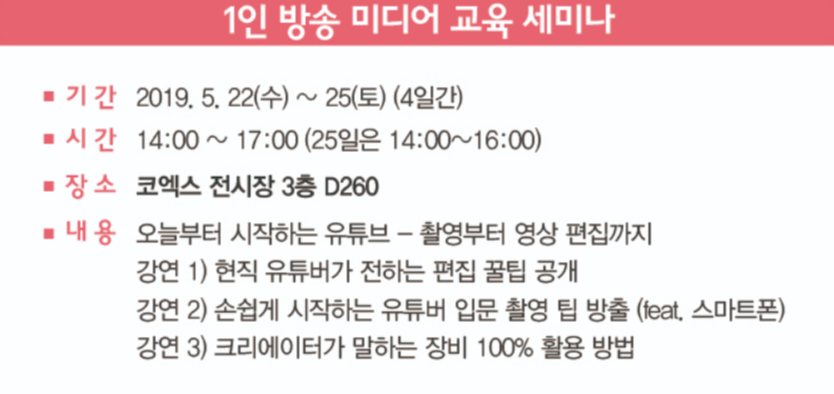아무래도 유투브나 1인 방송과 관련된 교육과 전시장이 인기가 엄청 많았어요.
