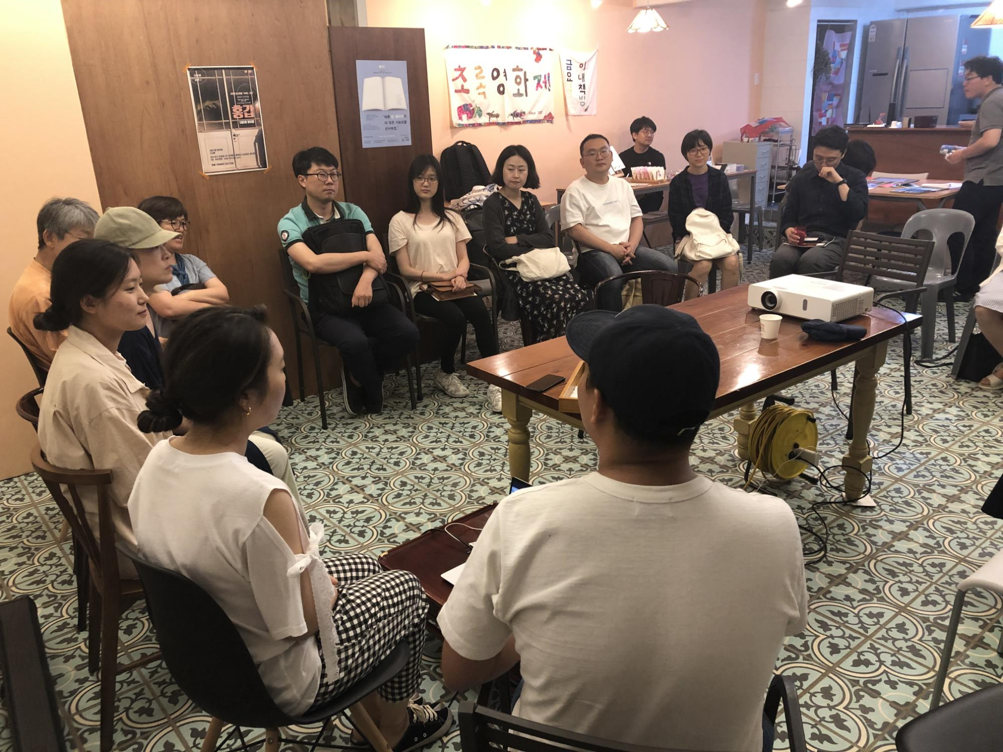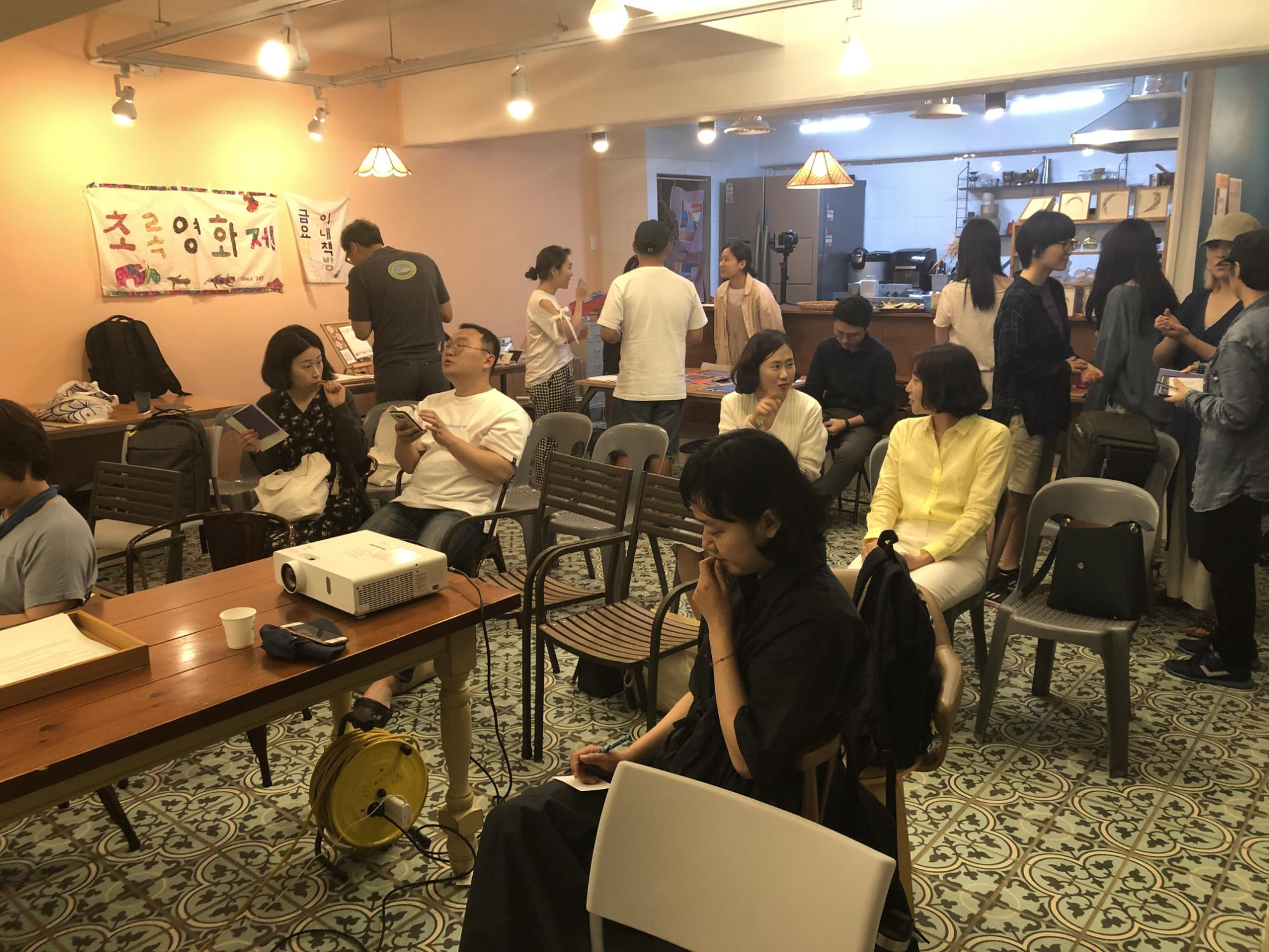 초록영화제를 준비하는 오붓한 은수셰프님과 사이섬 식구들, 그리고 초록영화제 명MC 허주영님공간 오붓한에서, 영화와 사람을 기다리는 초록영화제의 멋진 관객님들