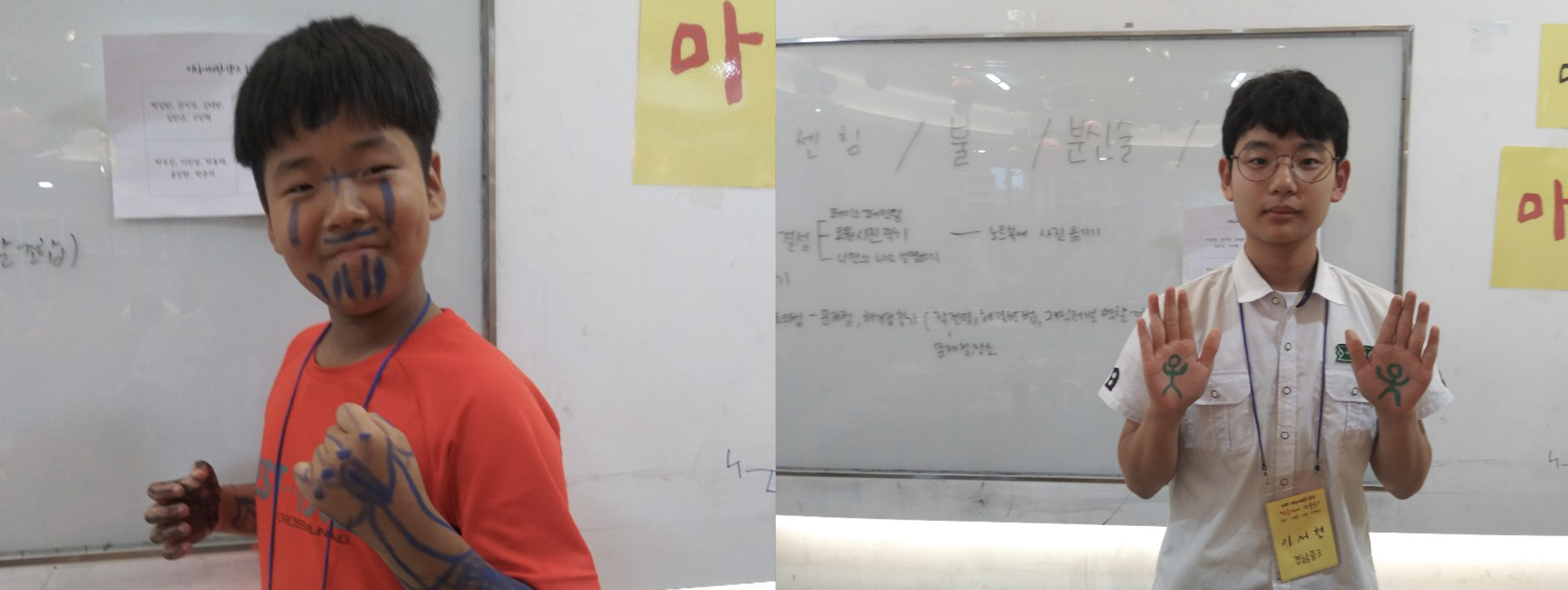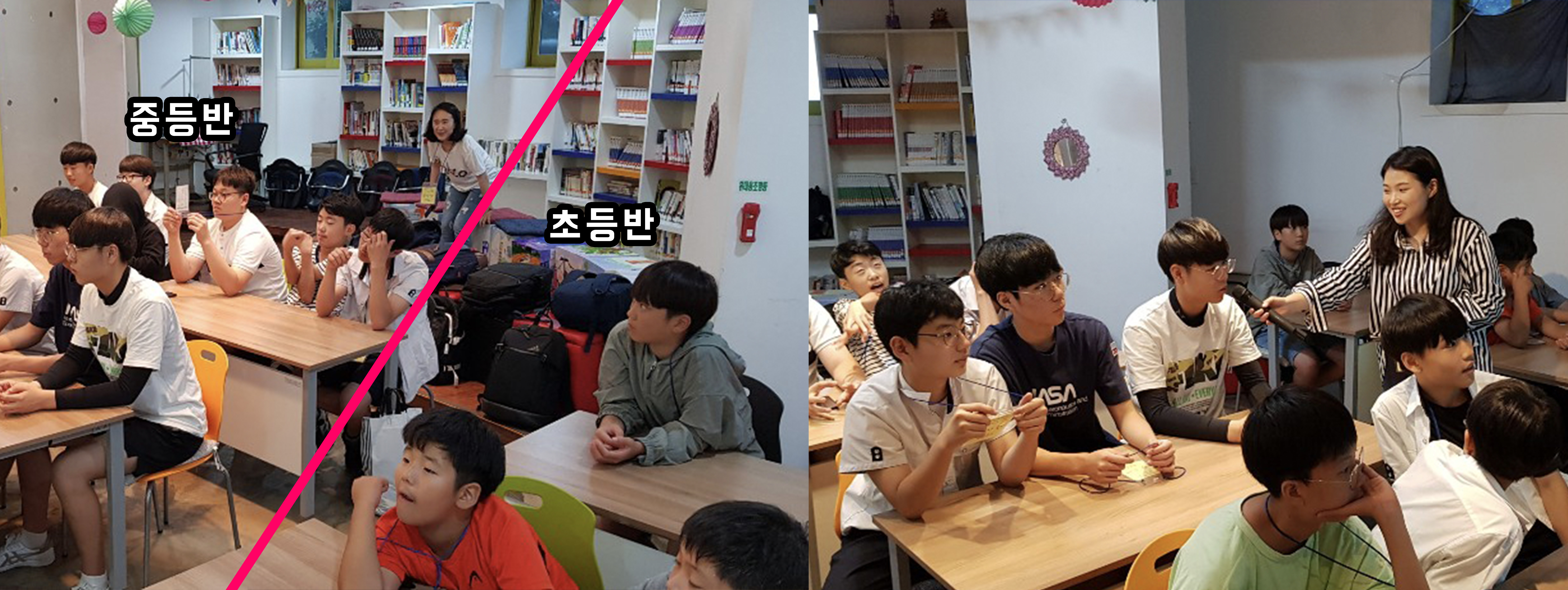 초반에는 어색한지 초등반과 중등반이 따로 앉아서 수업을 들었는데요.