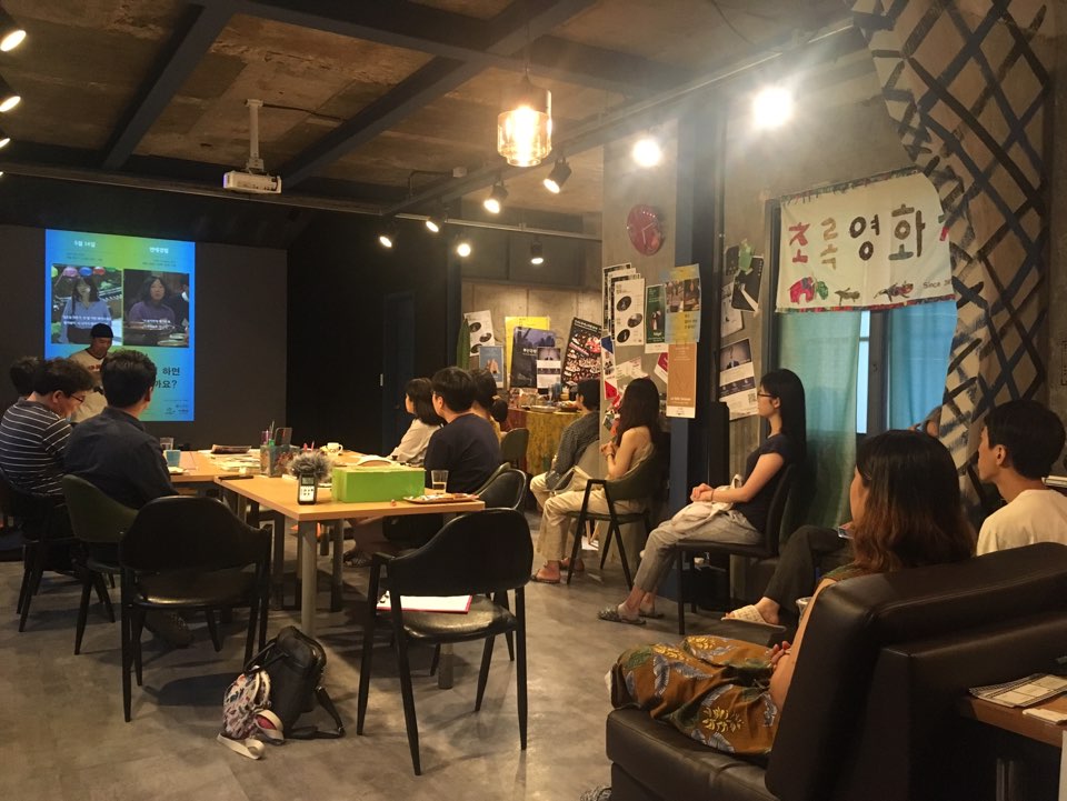 간간이 비가 내리고 습도가 높은 여름 날씨, 영화를 위한 공간 "공간나라"는 단편영화를 즐기며 이야기를 나누기엔 적격입니다.