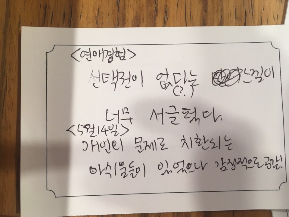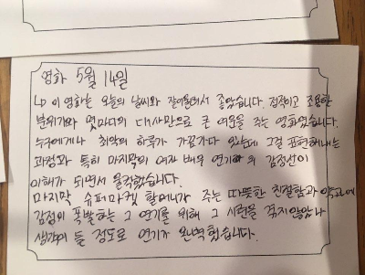 <5월14일> 손편지 두줄 쓰고 생색내는 사람이 있을까? 심정적으로 공감이 간 것은 비슷하다. 아무도 모르는 타인에게 얘기하면서 위로 받을 수 있다는 것도.