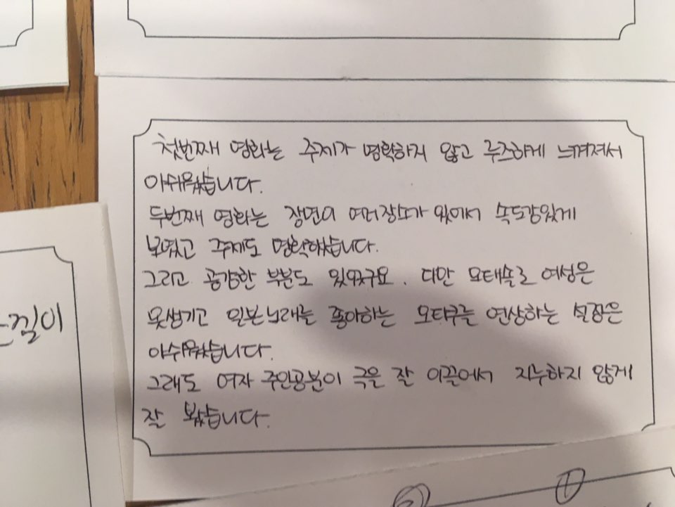 | 2019년 5월 초록영화제 [졸업]상영후기 (0) | 2019.06.17 |