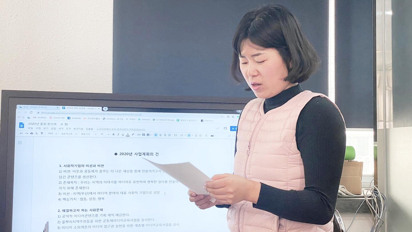 2020년 미디토리 총회는 2019년 미디토리의 성장과 과제를 되짚어보고, 2020년의 활동방향과 사업에 대해 전 조합원이 결정하고 결심하는 시간이었습니다. 올해 총회에서는 특별한 시간도 있었습니다.