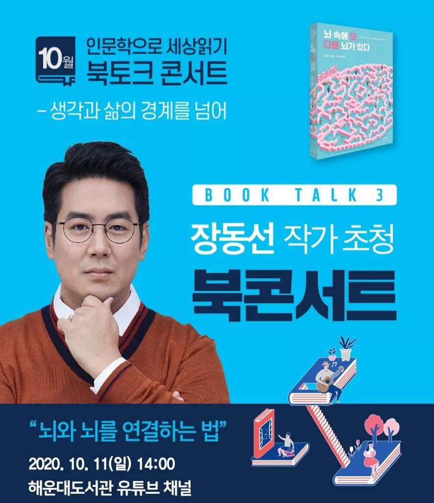 ■ 사업내용: 해운대 도서관 북토크 콘서트의 행사 기획은 문화예술 사회적기업 주식회사 문화콩이 총괄하였으며, 코로너 19확산 방지 및 예방을 위해 온오프라인 생중계로 이루졌습니다. 미디토리는 유튜브 실시간 생중계를 두시간 동안 진행하였습니다.