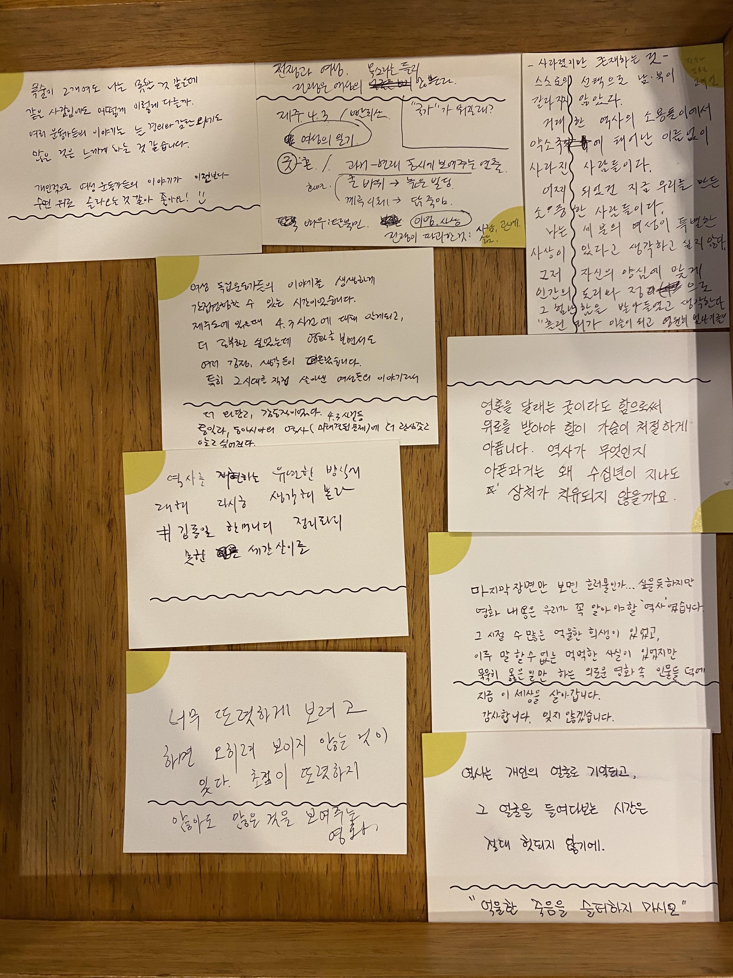 제주도에 있을 때 4.3사건에 대해 알게 되고, 더 공부하고 싶었는데 영화를 보면서도 여러 감정과 생각들이 떠올랐습니다.