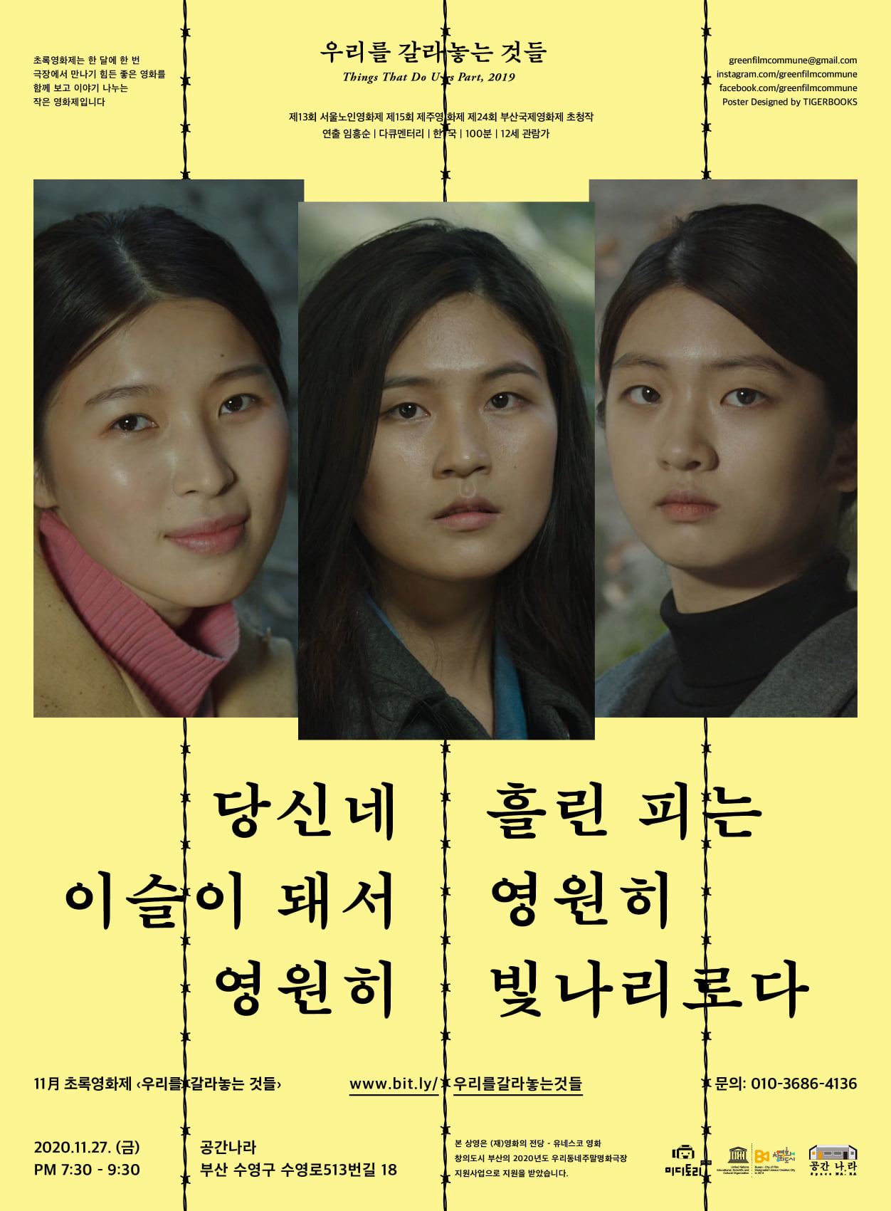 우리를 갈라놓았던 영화 속 주제는 갈라져 있던 관객들의 경험과 감정을 작은 공간에 모이게 하였습니다.