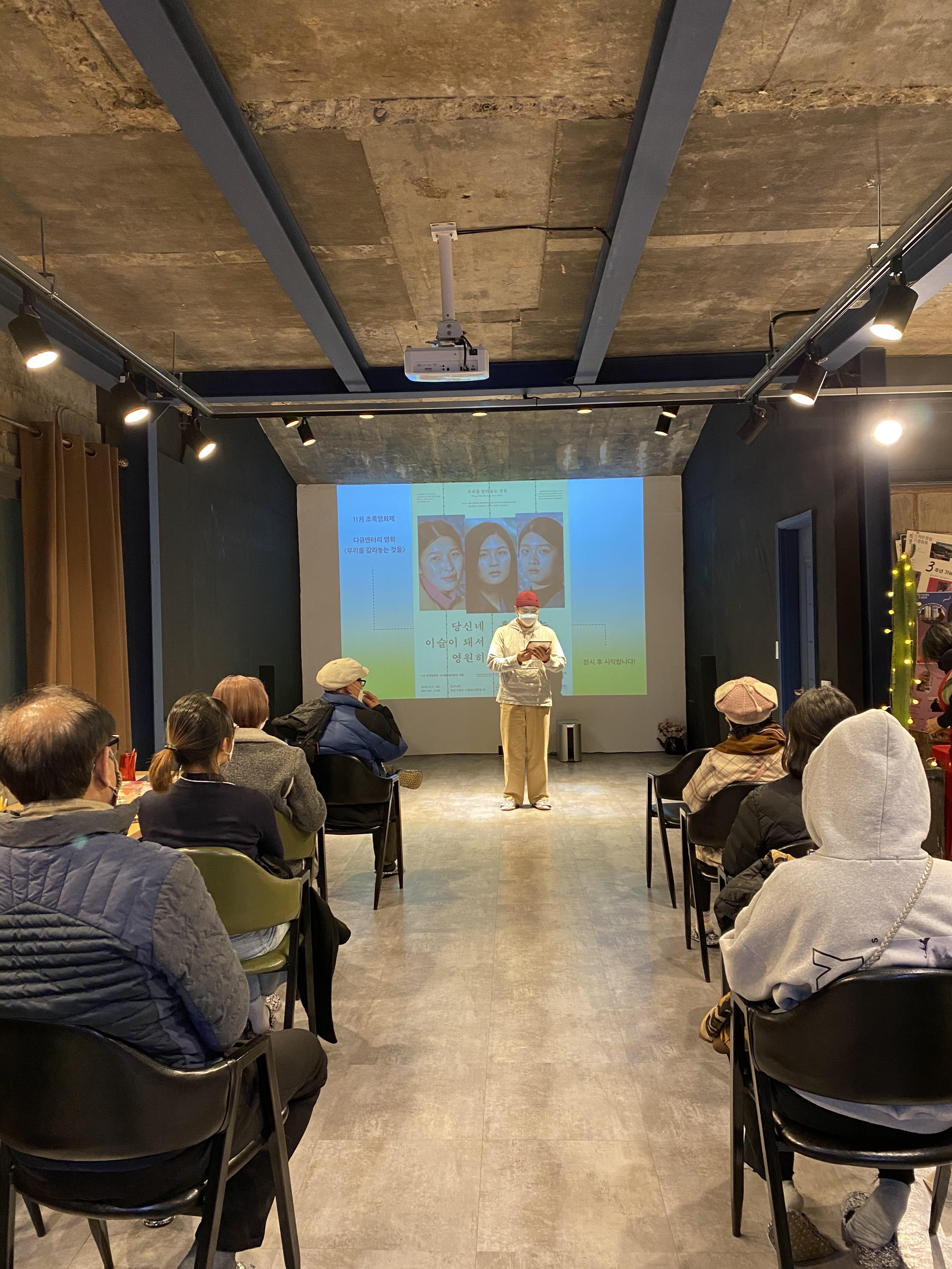 11월 초록영화제는 미리 예약을 받아 소수의 인원으로 진행하였으며