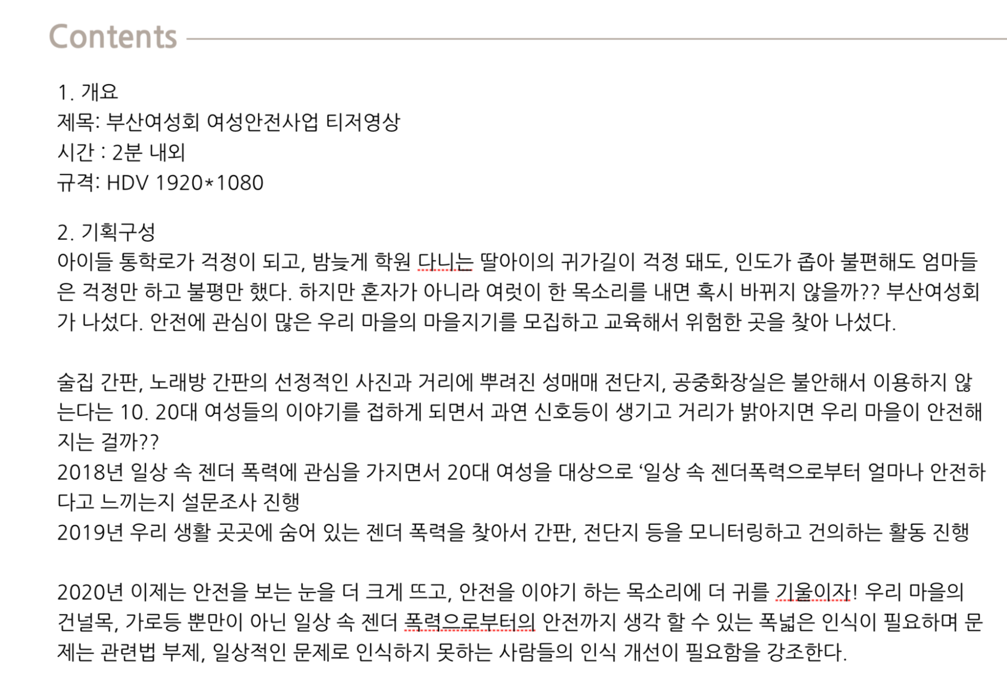 지금까지 두 달동안 부산여성회와 같이 기획하고 영상을 제작하는 과정에서 오고 간 대본과 작업 과정을 소개했는데요
