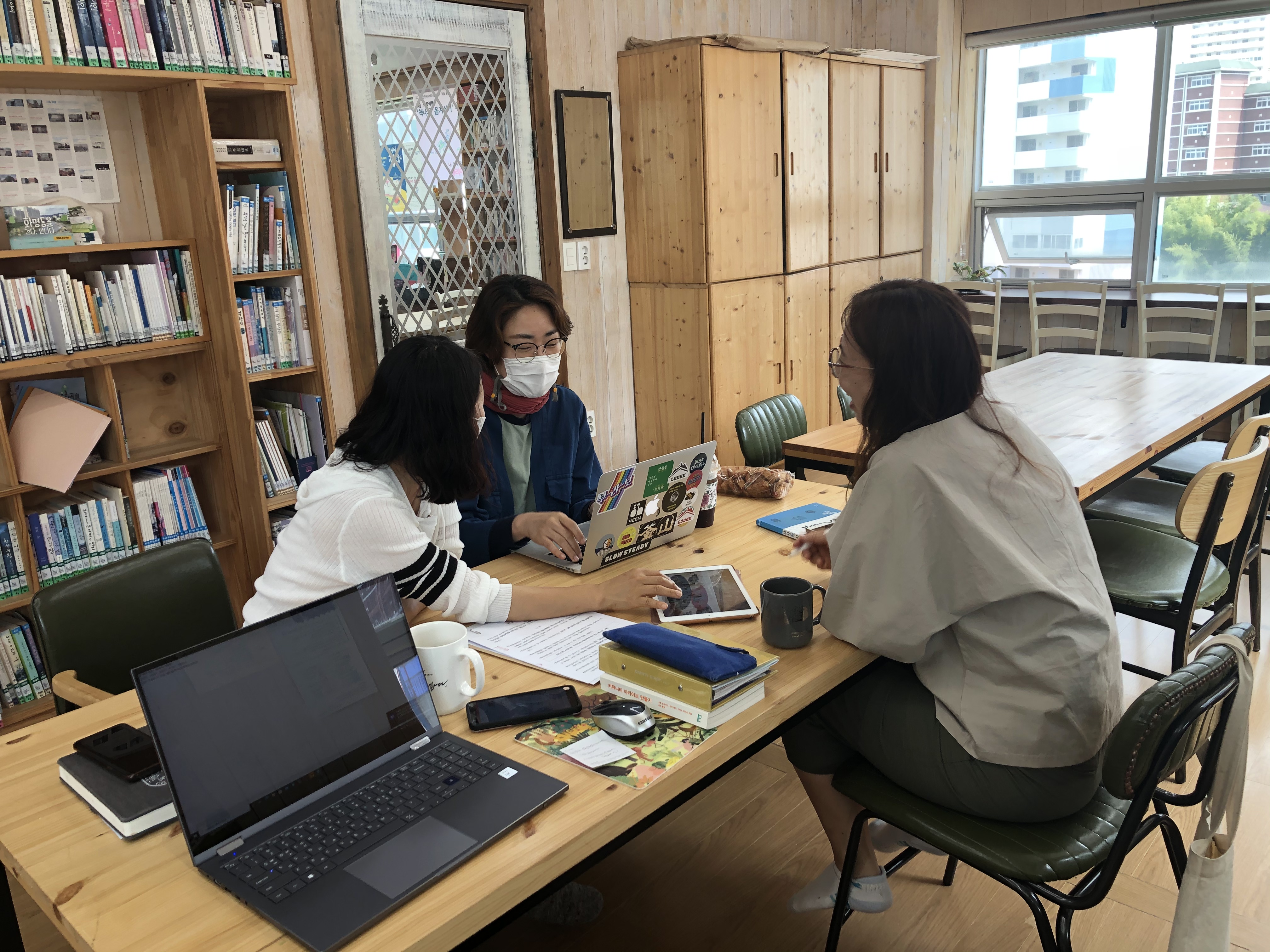 도서관 활동가들은 화명동 마을기록관이 기존의 마을박물관처럼 그저 옛기록을 모아두는데 그치는 장소가 아닌, 오늘날의 황명동에 관한 기록이 주민의 힘으로 매일매일 쌓여가는 생동하는 마을기록관으로 만들고 싶다고 하셨어요. 그러기 위해서는 여러가지 자원과 준비가 필요한데 공모지원사업 신청을 염두해두셨고 함께 협업할 파트너로 미디토리와 빨간집의 문을 두드리셨던거죠.