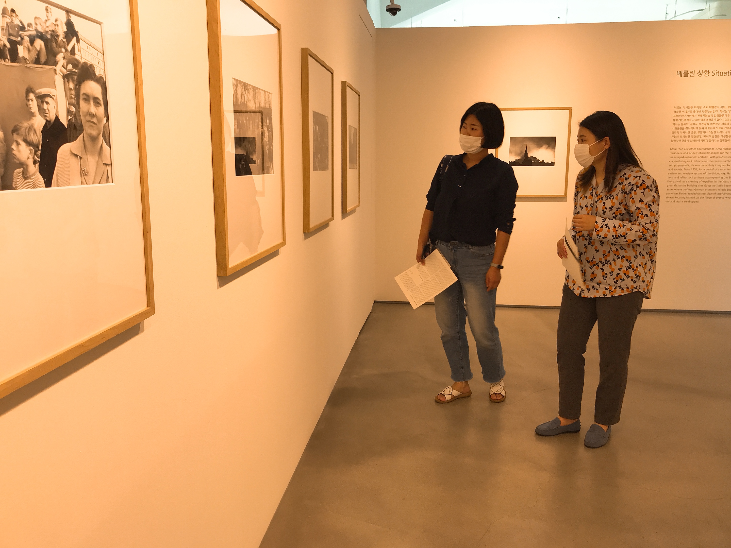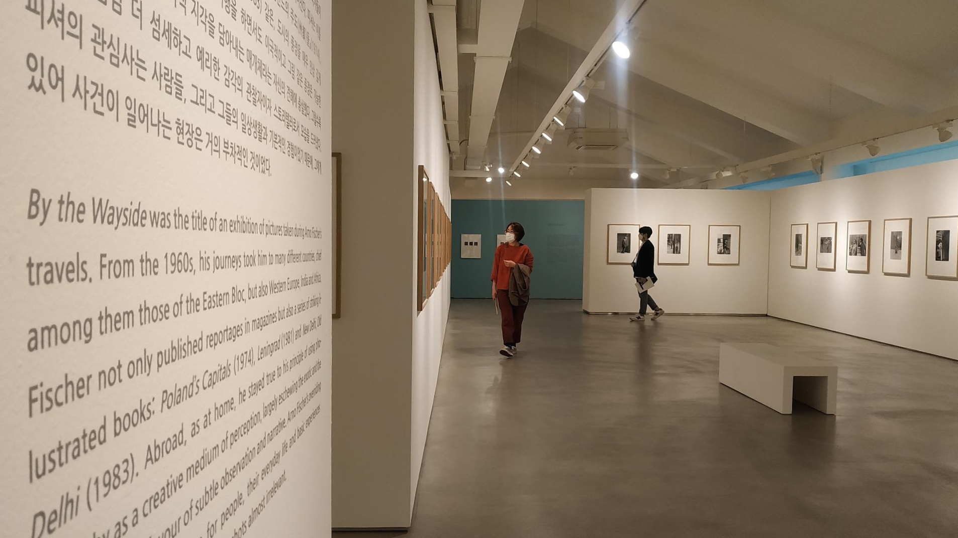 이번 전시에서는 베를린 출신 사진가였던 아르노 피셔의 다양한 활동 시기를 [베를린 상황], [뉴욕], [길가에서], [적도기니], [인물사진], [모드], [정원] 7개의 세션으로 나누어 감상할 수 있었습니다. 작품 사이에 쓰여진 다양한 문구들은 아르노 피셔가 담으려고 한 사진 속 의미를 이해하는데 도움을 줬습니다.