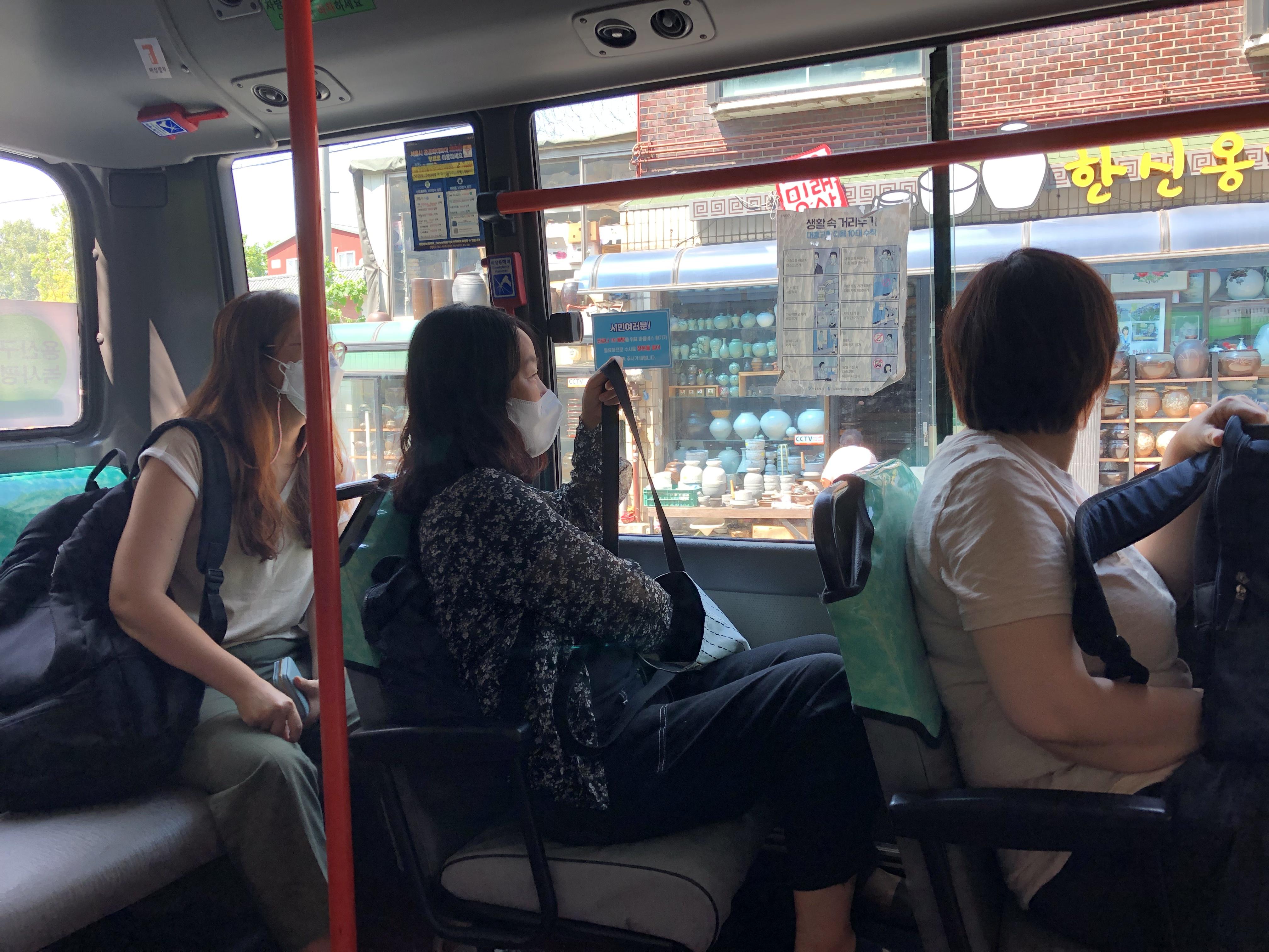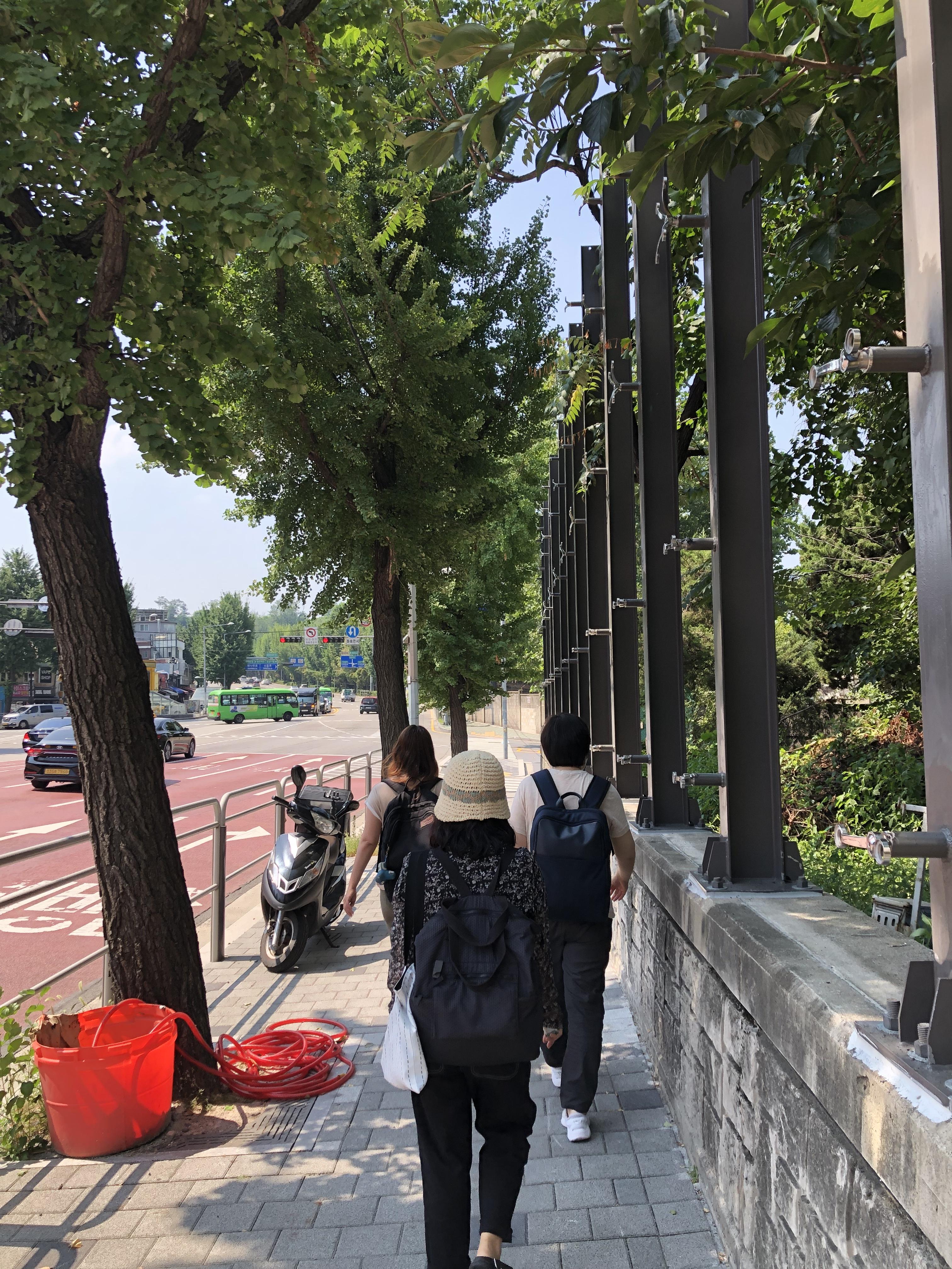 탐방 둘째날, 연구팀 언니들은 아직까지 지친 기색이 없으십니다. 숙소에서 나와 해방촌을 향해 가는 길, 화려한 태양이 언니들을 감싸고, 지하철에 마을버스를 갈아타는 환승코스에도 웃음을 잃지 않으십니다.