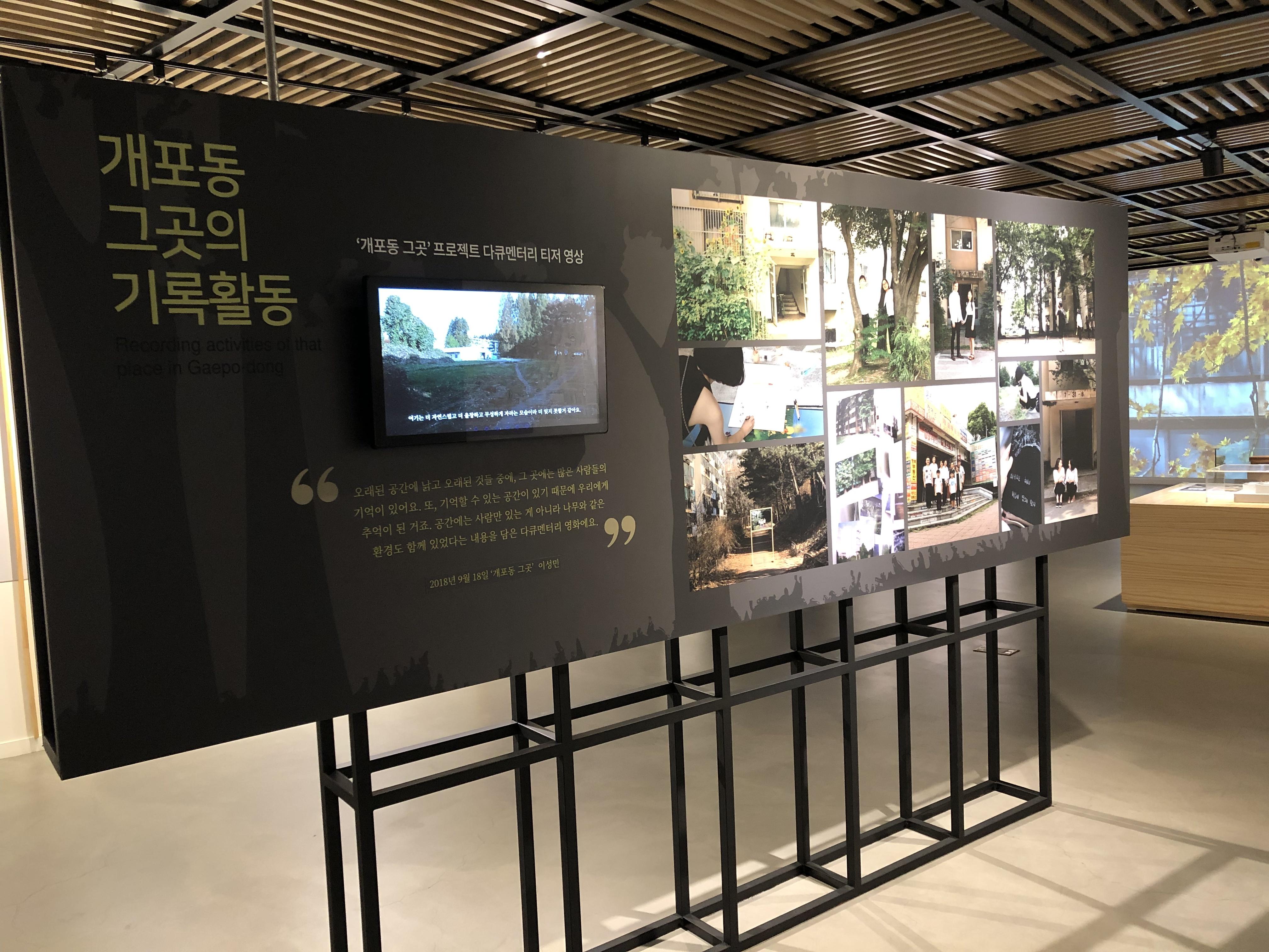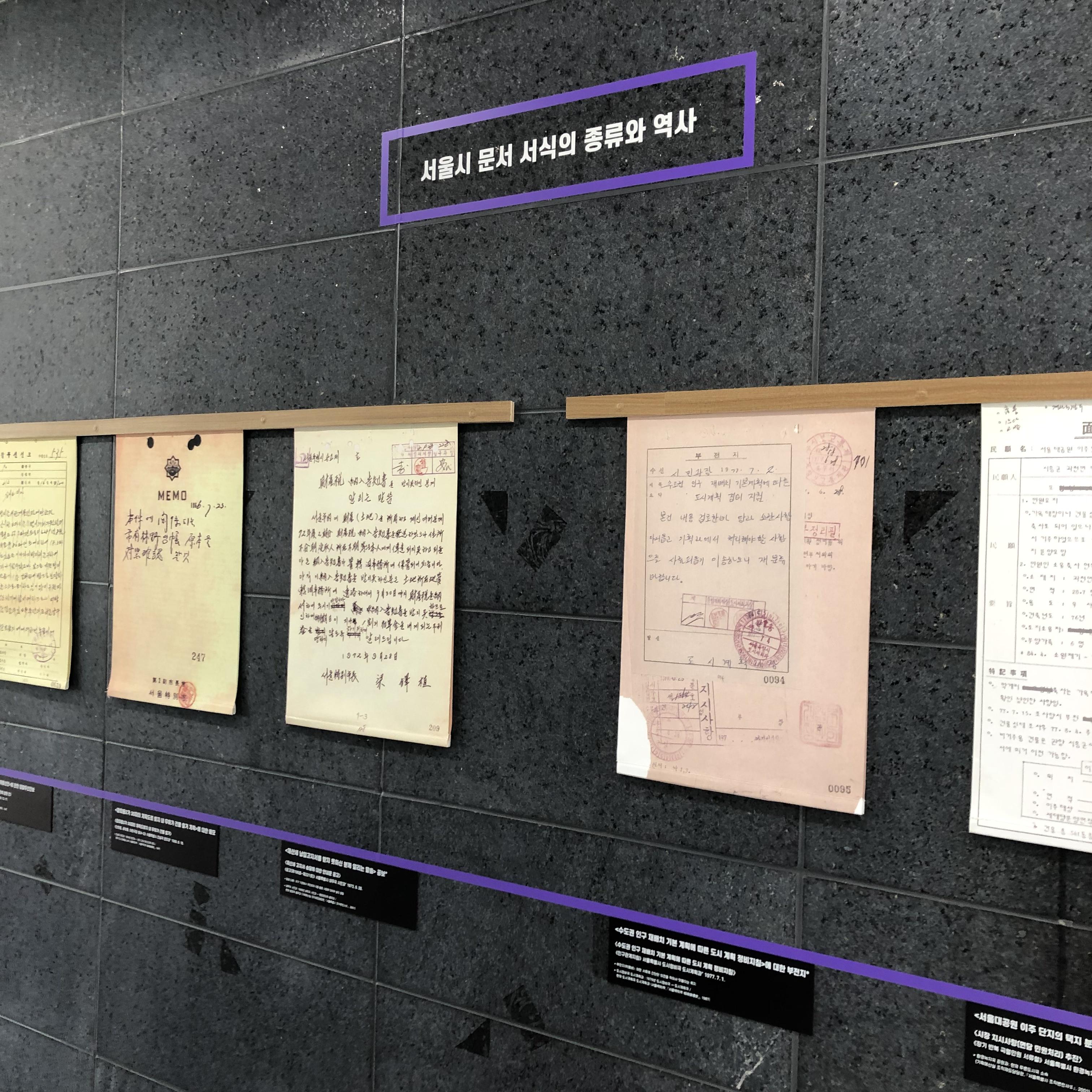 서울기록관 경관과 입구 공간안내 글입니다. 서울기록원 원종관 과장님으로부터 서울기록원 설립준비부터 현재까지 어떻게 운영하고 있는지, 마을단위의 기록관은 어떻게 준비해야 지속가능한 운영이 될수 있는지 들어봤어요. 주옥같은 경험을 나눠주셨어요.한글자도 빼놓지 않으려는 저의 의지를 눈썹이 말하고 있네요. 영상아카이브 작업에 대해 고민이 많은 미디토리에게 아카이빙된 자료를 어떻게 활용하고, 전시할 것인가도 늘 고려해야하는 부분입니다. 오래된 지역이 재개발되는 과정을 전시하고 있습니다. 디지털로 기록되기 이전의 기록물들은 고유의 색으로 시간이 흐르면서 사회가 어떻게 변해가고 있는지를 온몸으로 말해주고 있습니다.