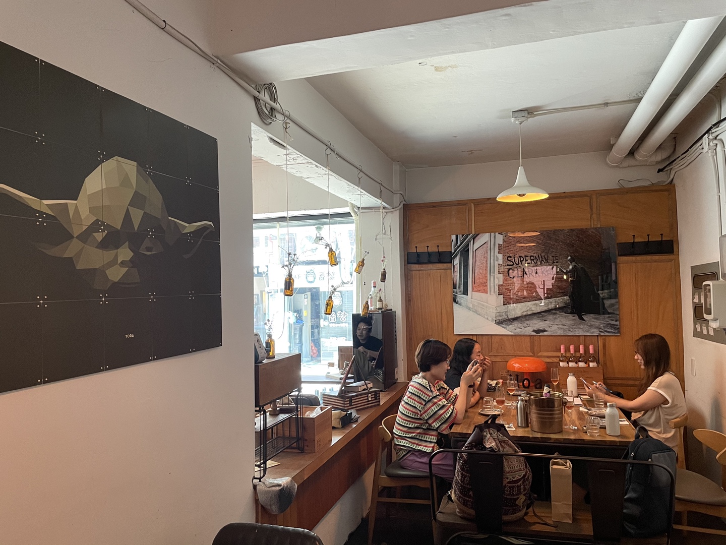 해방촌에 있는 시장은 현재 재개발을 앞두고 있어서 조금은 썰렁했지만, 과거와 현재가 공존하는 느낌이 특별했습니다. 무더운 날씨에도 즐거운 대화를 나눠주신 두분께 진심으로 감사드려요! 저희가 무작정 탐방만 한 것은 아닙니다. 이렇게 잠깐 휴식을 취하면서 지난 현장에 대한 소감도 나누고, 더불어 맛난 것도 먹고 그랬습니다. 해방촌에 있는 빈티지한 느낌의 피자와인가게에서 잠시 쉬어갔어요. 백복주 까치샘께서 멋드러진 한컷을 남겨주셨네요.