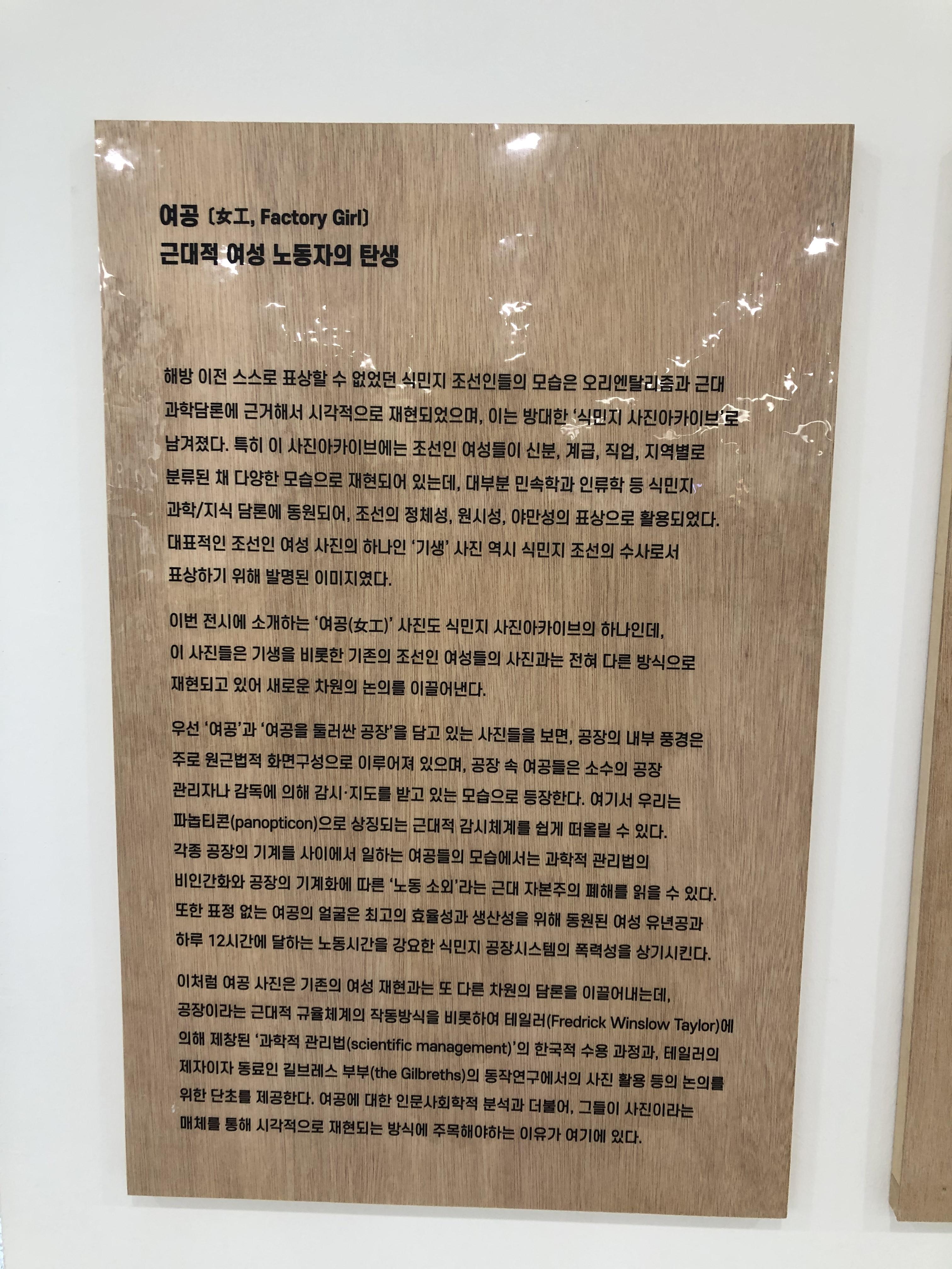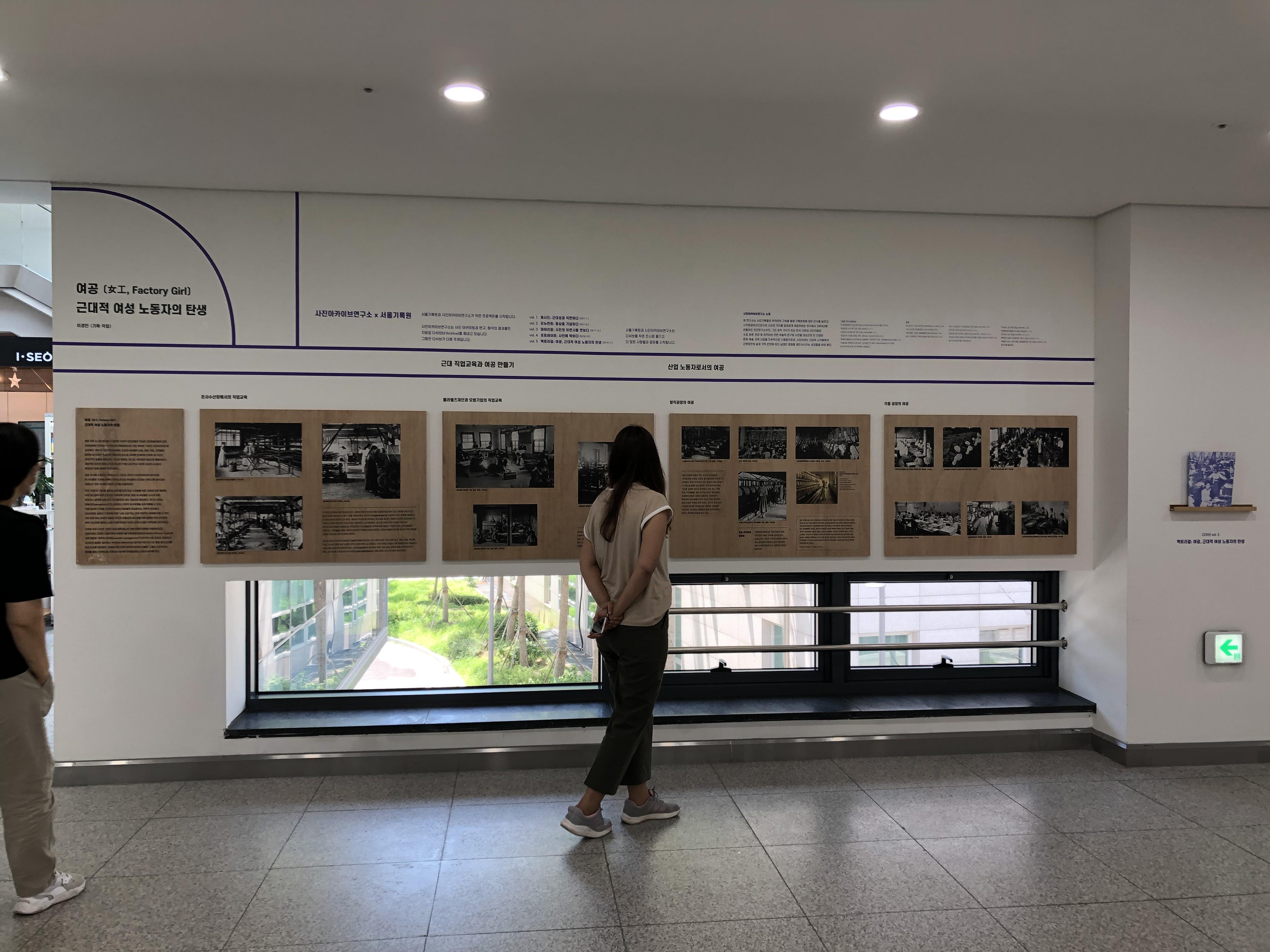 기록관 복도에는 '여공, 근대적 여성노동자의 탄생'이라는 주제로 사진전시가 이루어지고 있었어요.
