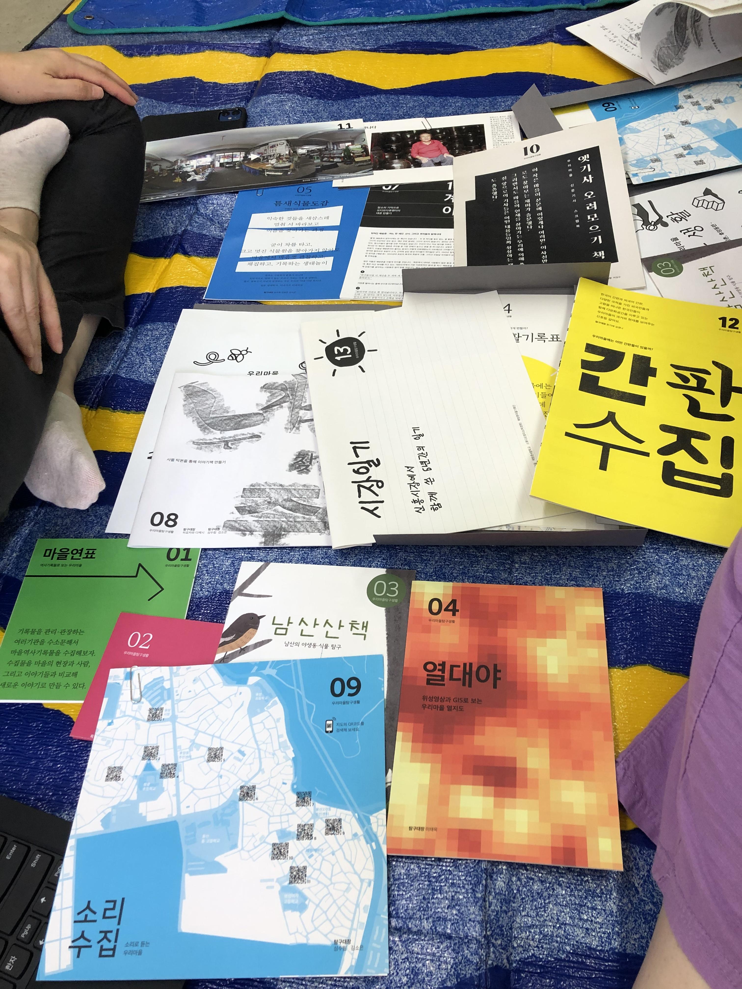 방문 선물로 두루마리 휴지를 준비했는데, 잠시 책상으로 변신했네요. 해방촌 마을기록단은 도시재생사업과 문화재단 지원사업과 연계한 프로젝트들로 운영되었다고 합니다. 이곳의 가장 큰 특징은 젋은 전문가집단과 주민들의 콜라보가 아주 잘 이루어졌다는 점이구요. 그 과정에서 개발된 여러가지 기록도구들이 다른 지역의 마을기록도구로도 활용되었으면 하는 요청이 많아서 아예 키트를 제작하고 관련한 컨설팅이나 교육이 이루어지고 있다고 하네요!