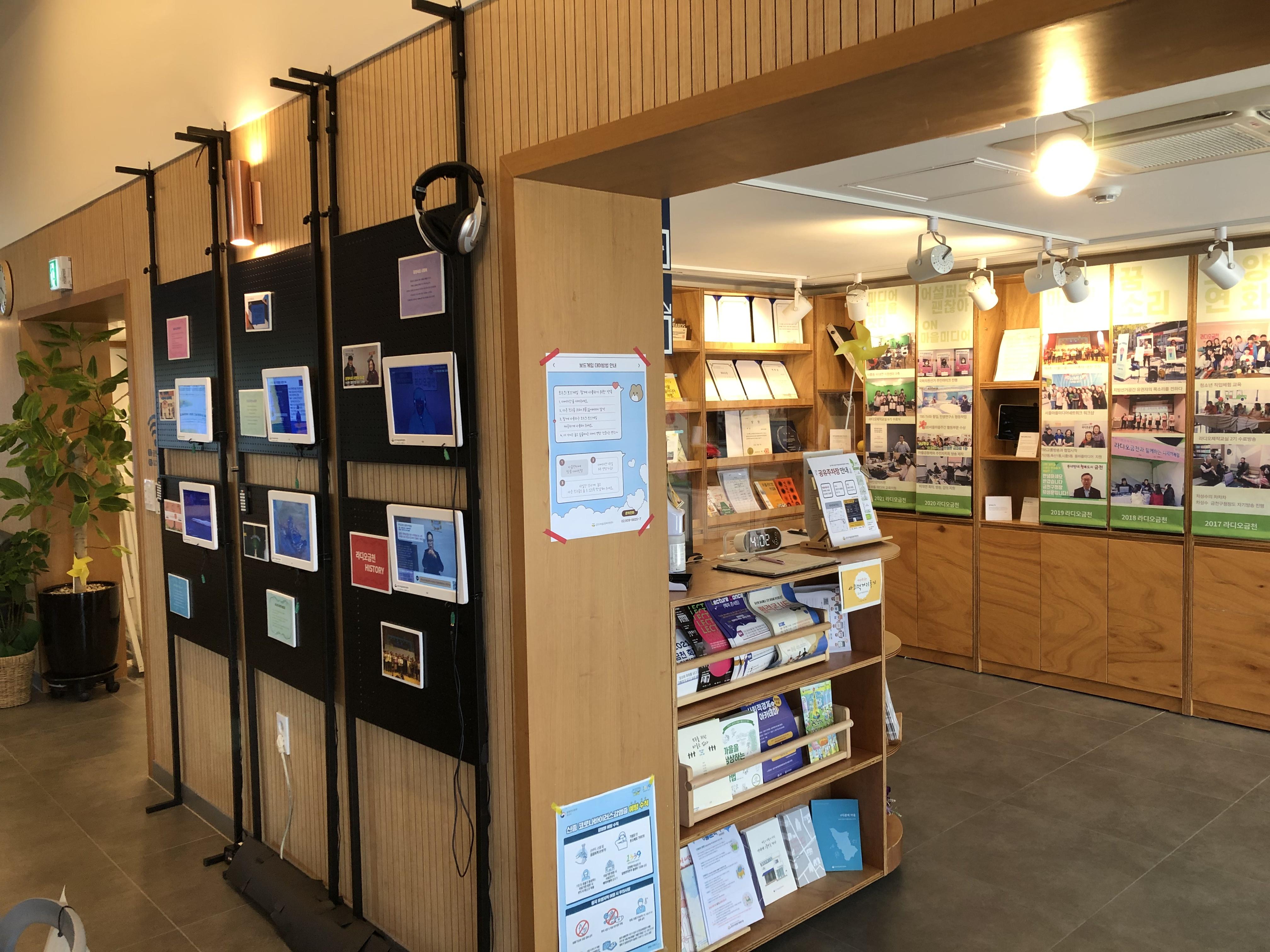 '라디오 금천'의 실시간방송이 이루어지기도 하고, 방송했던 대본을 비치해서 누구라도 언제나 마을 이야기를 접할 수 있도록 정리되어진 모습이 인상적이었습니다.
