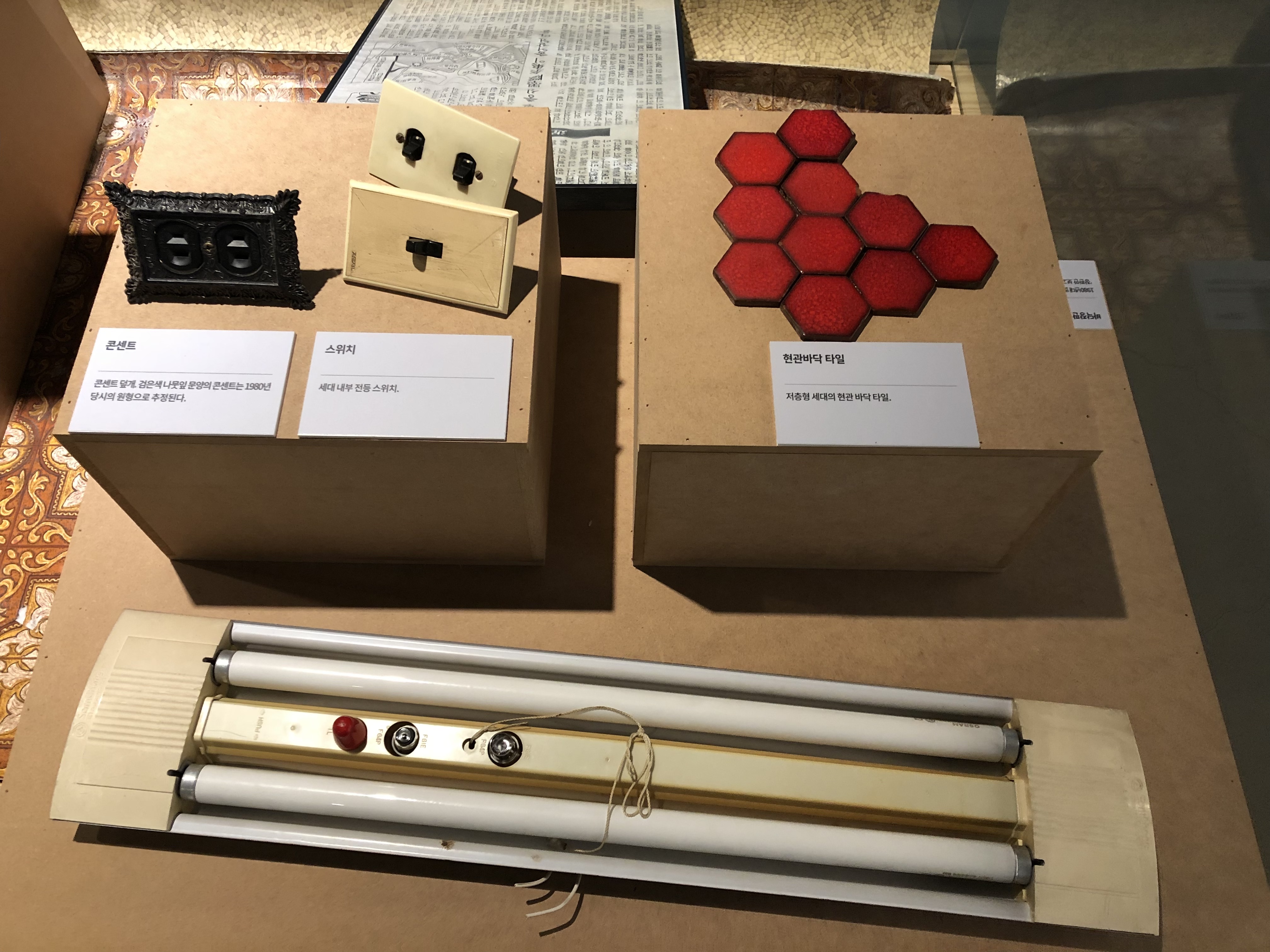 전기 스위치와 콘센트, 형광등, 타일, 명패, 녹음테이프... 마치 타임머신을 타고 과거로 온 듯 합니다.