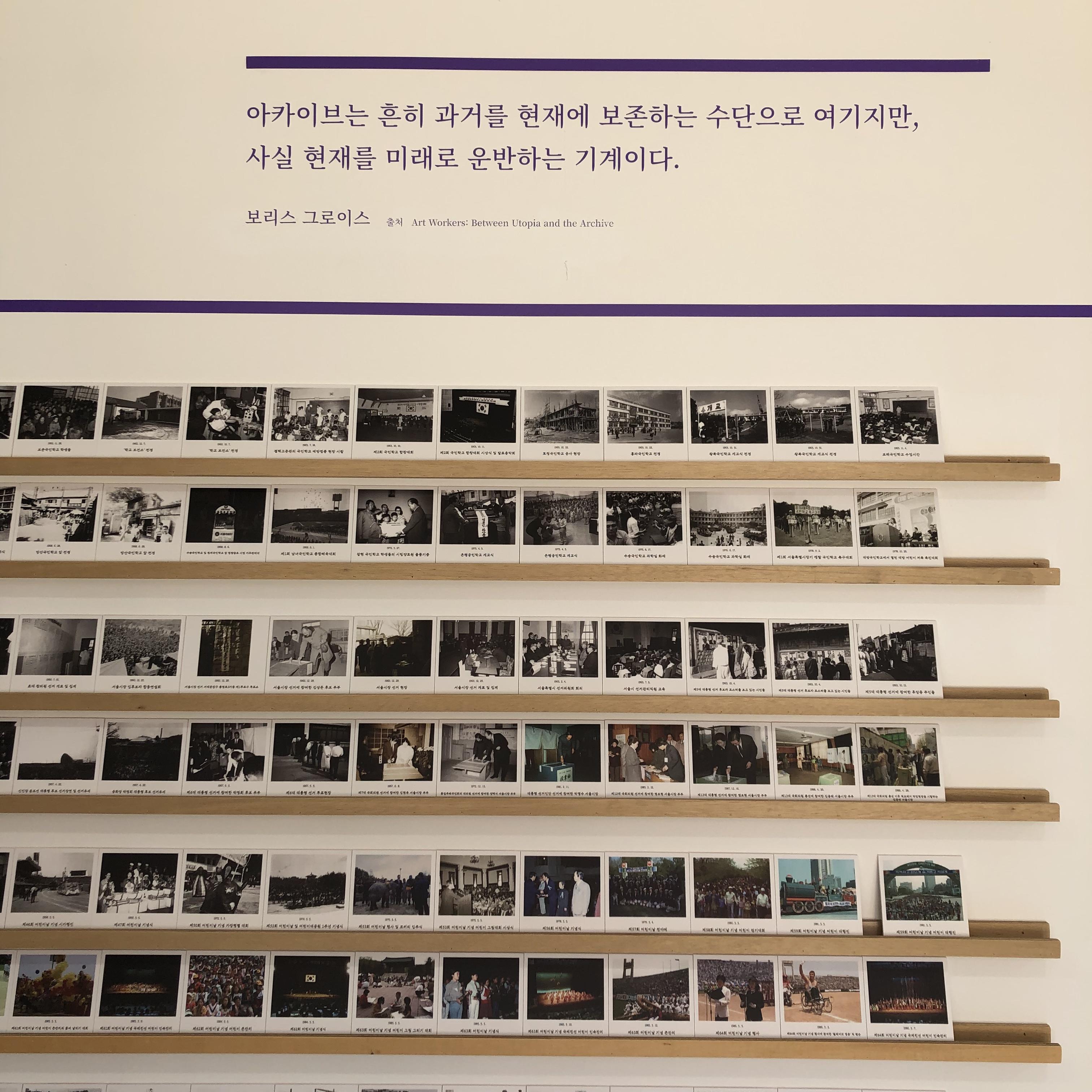 "아카이브는 흔히 과거를 현재에 보존하는 수단으로 여기지만, 사실 현재를 미래로 운반하는 기계이다." (보리스 그로이스)