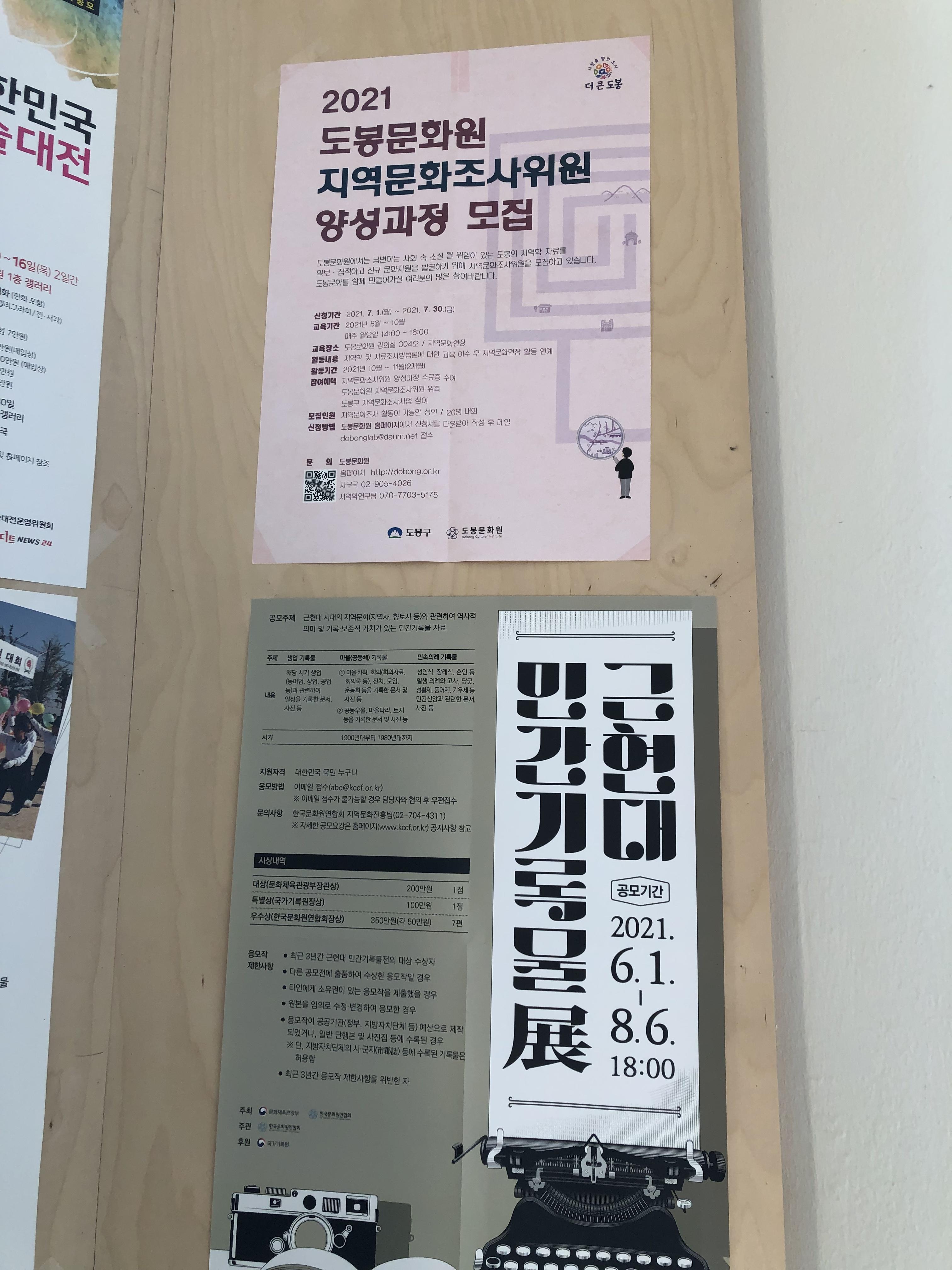 첫째날의 두번째 코스 성북마을아카이브를 운영하고 있는 성북문화원에 도착했어요! (잘나가는 X세대 포즈를 자연스레 취하시는 배은희 대표님) 입구에서부터 기록활동을 얼마나 중요하게 여기는지 느껴집니다. 제1회 성북구 민간기록물 수집 공모전이 열리고 있네요. 도봉구는 지역문화조사위원 양성과정 모집이 한창입니다.성북마을아카이브 주민기록단의 참여로 탄생한 구술생애사 시리즈. 주민기록단으로 활동하는 주민분들은 양성과정을 통해 참여하게 되셨는데요. 지금까지도 꾸준히 마을을 기록하는 활동을 이어가고 계시다고 합니다. 그 비결은 무엇인지 나중에 나올 저희 연구보고서에서 확인하세요! 성북문화원의 오래된 현판 앞에서 백외준 연구과장, 오진아 마을아카이브팀 팀장님과 함께 기념촬영! 성북마을아카이브의 웹페이지가 정말 멋진데요. 그만큼 엄청난 노력을 하셨더라고요. 현재 온라인 상으로 아카이브가 운영되고 있지만, 조금더 주민들의 삶의 공간에서 아카이브가 자리잡으려면 오프라인 기록관이 필요하다고 하셨어요. 현재 성북구와 협의를 통해 기록관을 위한 공간을 마련하기 위해 장소를 물색하고 계시다고 합니다. 그런 말씀을 들으니 화명동의 마을기록관이 더 소중한 공간으로 느껴졌답니다.