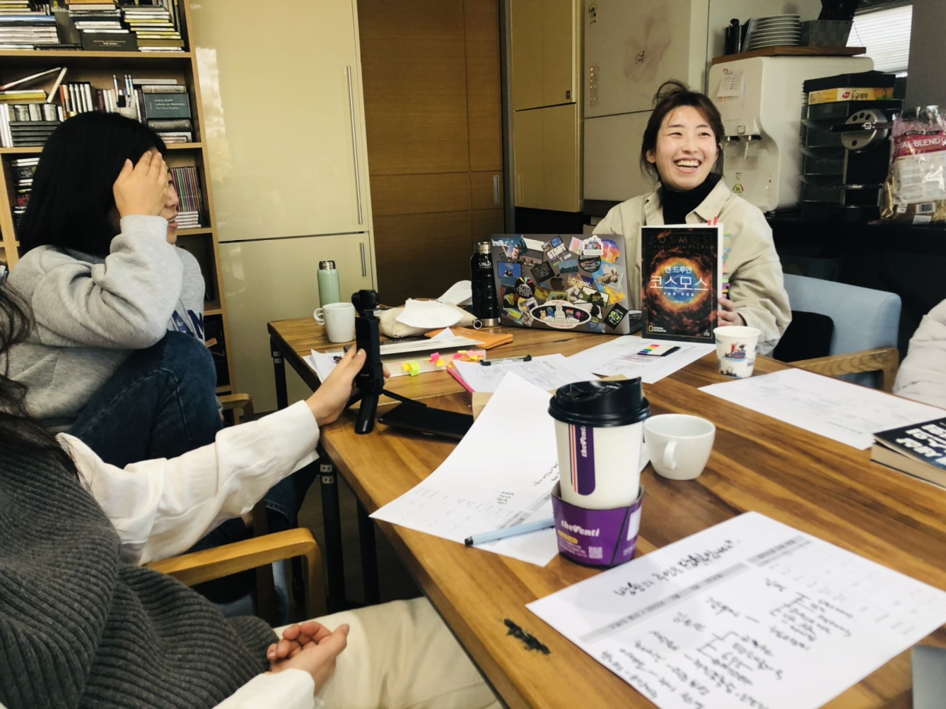 지민 이 책은 두번째 버전이라고 볼수 있어요. 첫번째 버전인 1980년 판은 칼 세이건의 코스모스이구요. 이 책은 앤드루얀의 코스모스입니다. 여성기획자이며, 칼세이건의 세번째 아내이기도 합니다. 우주와 과학에 대한 정신사와 관련된 내용의 책을 냈고, 2020년 판이 출간되었습니다. 이 책은 우주를 탐구했지만 우리가 어디에 있는지에 대한 지점을 다루고 있다는 점에서 더 나아가 앤드루얀의 정신이 담겨있다고 생각합니다.