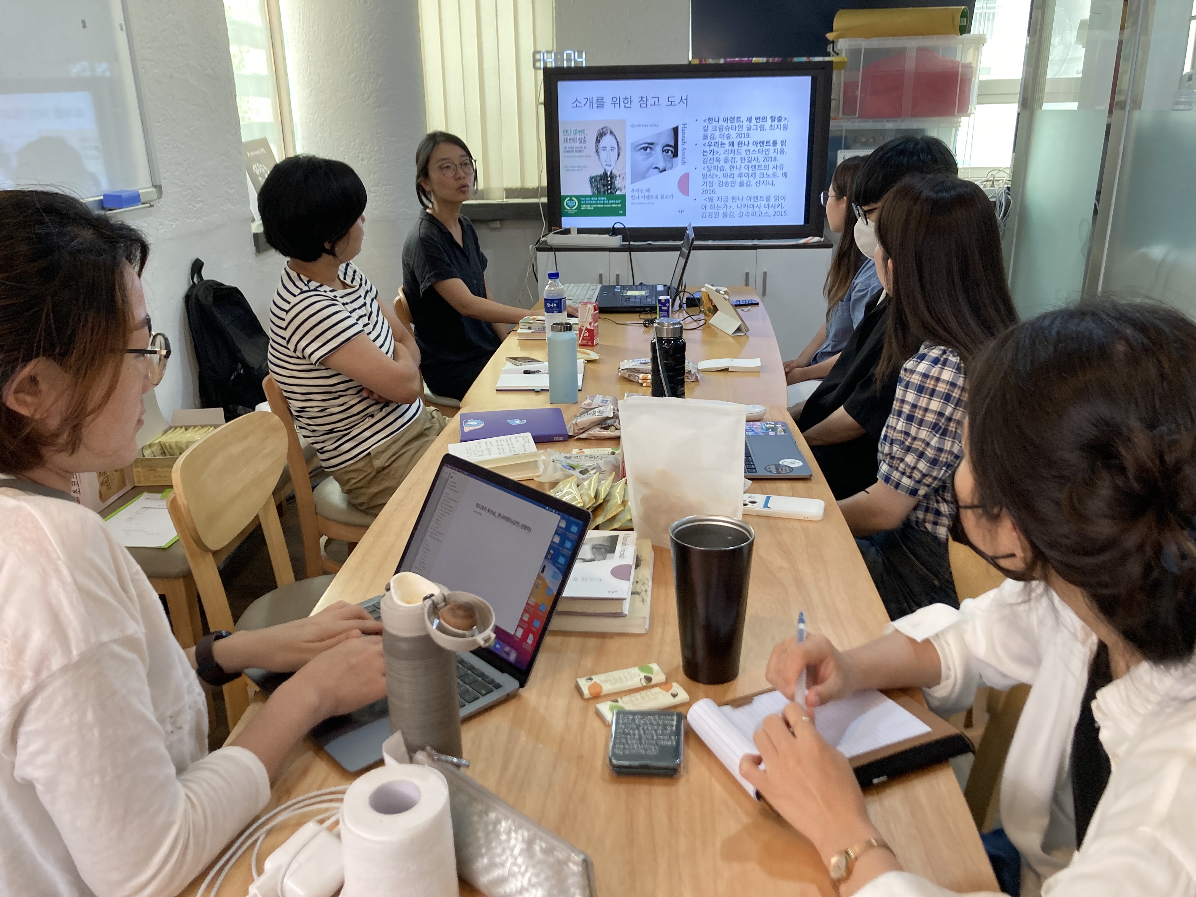 김영 더 알고 싶다는 생각이 제일 먼저 드네요. 김동규 선생님 강의 때도 비슷한 이유로 좋았는데, 생각하는 도구를 찾는다는 느낌이 들었어요. 어떻게 하면 더 깊이 사유할 수 있을까? 방법을 찾고 싶었는데, 특히 요즘은 내가 폭력적이지 않은 사람으로 살아가는 방법은 뭘지 찾고 있어요. 양창아 선생님의 수업도 좋았지만, 평소에도 '철학'강의를 좋아하는 이유가 '단어'에 대해 명확히 규정할 수 있어서에요. 혼돈을 줄이고 개념을 명확히 할수 있으니까요. 초록영화제 뒷풀이할 때 양창아 샘을 몇 번 뵌 거 같은데, 그 때 말씀하실 때는 약간 노잼 느낌이 있었는데, 이번에 만나뵈니 강의전달 방식이 편안하면서도 스토리텔링을 정말 재미있게 해주시더라고요. 추천해주신 책을 다 못읽고 와서 '악의 평범성' 관련 영상을 찾아 보고 왔는데, 역시나 보고 오기 잘한 것 같긴 합니다. 교육 듣기 전에 단어를 조금은 듣고 오니까 좀더 이해가 잘 되는 것 같아요.