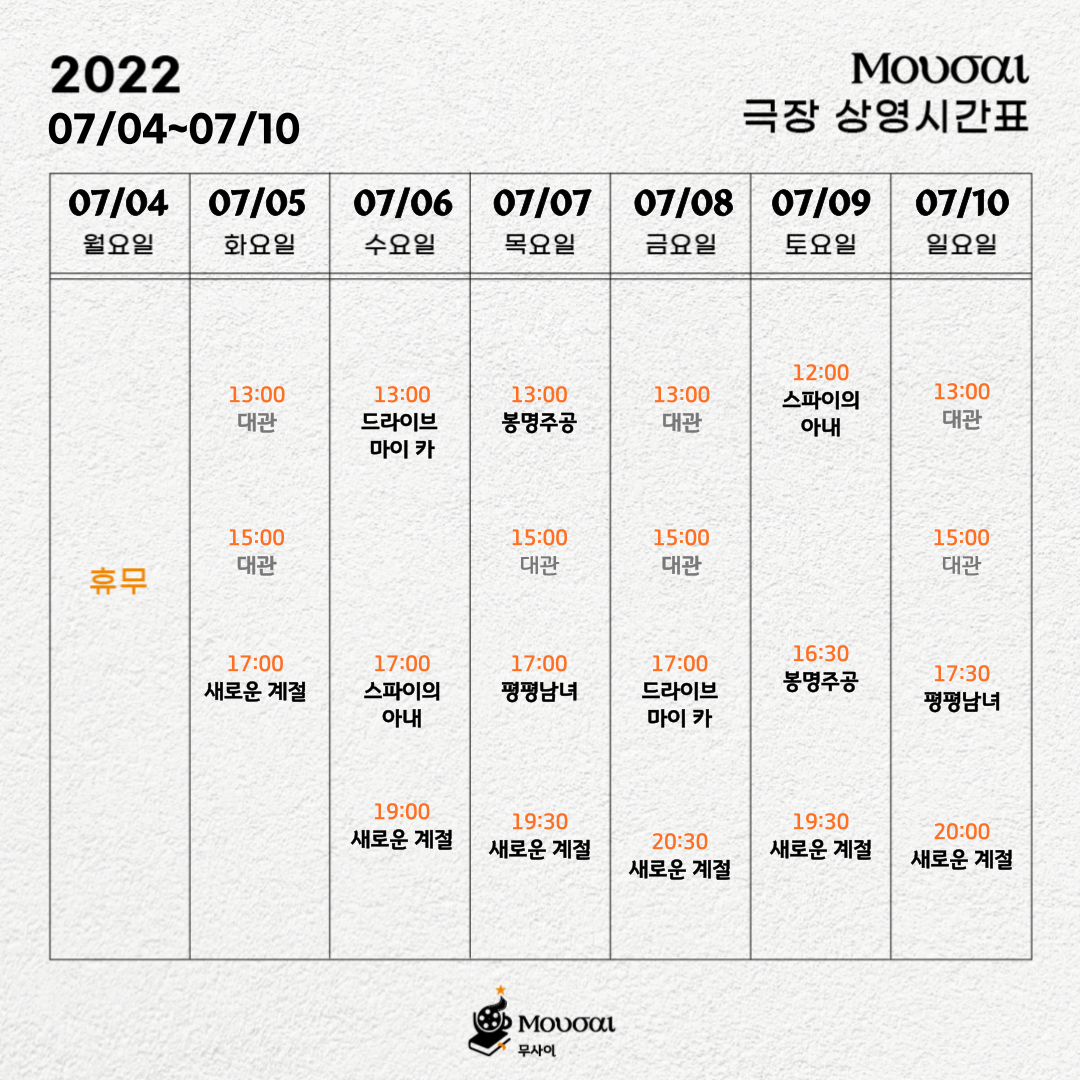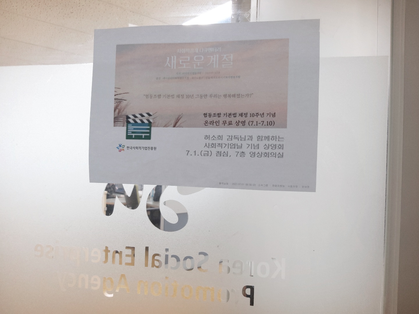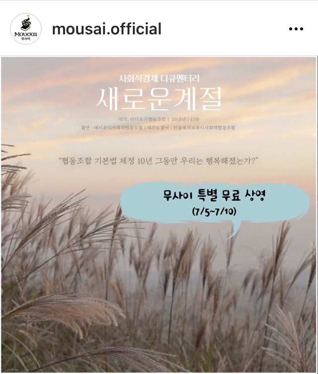 이번에 <새로운 계절>을 '사회적경제주간(7/5~7/10) 동안 무사이 극장에서 무료 상영회를 준비하셨는데요.