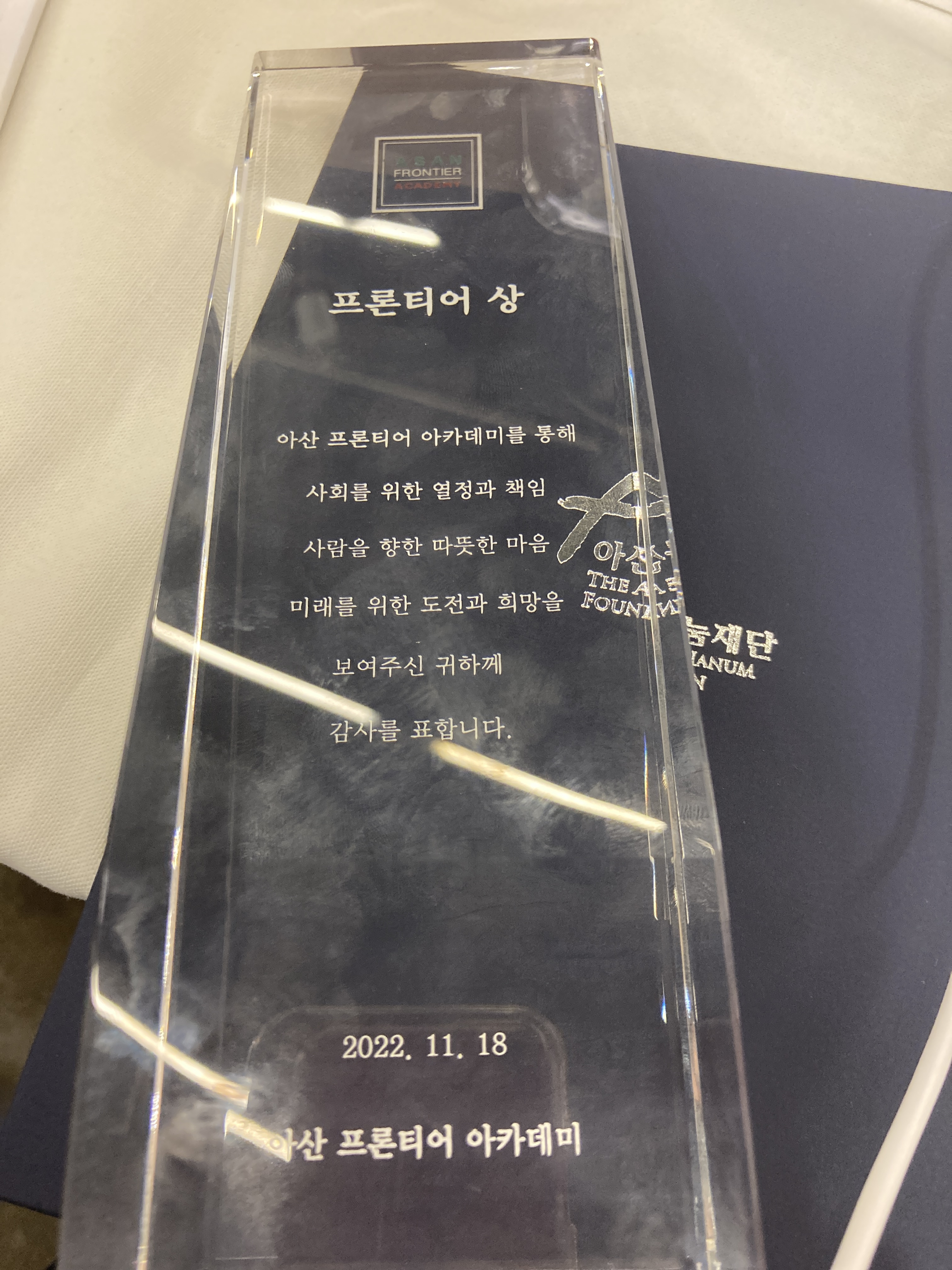 영광스럽게도 프론티어상도 수상하게 되어 더 뿌듯했는데요. 상패에 적힌 내용을 보고 은근 부담~~