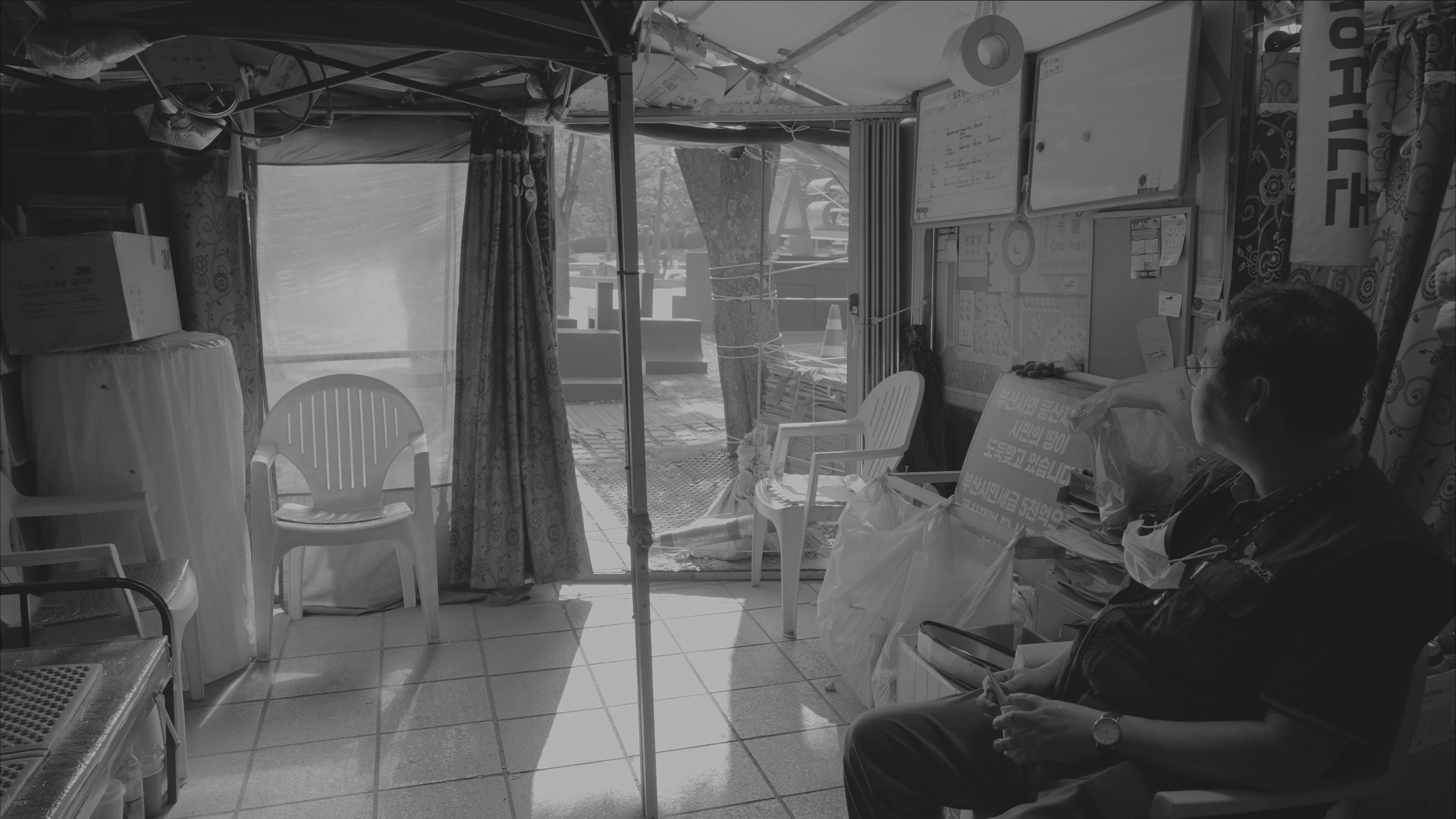 풍산재벌 특혜개발과 부당해고에 맞선 노동자들의 투쟁이 십년을 넘겼다. 풍산마이크로텍지회 조합원들이 시청 앞 투쟁을 이어가는 하루 동안, 여러 사람들이 천막을 찾아온다. 일터에서 밀려난 노동자들의 눈으로 바라본 천막 안의 이야기가 발화되어 카메라에 담긴다. 투쟁이 십년이 넘어가도록 이들이 지킨 것과 남기고 싶은 것들은 무엇일까.