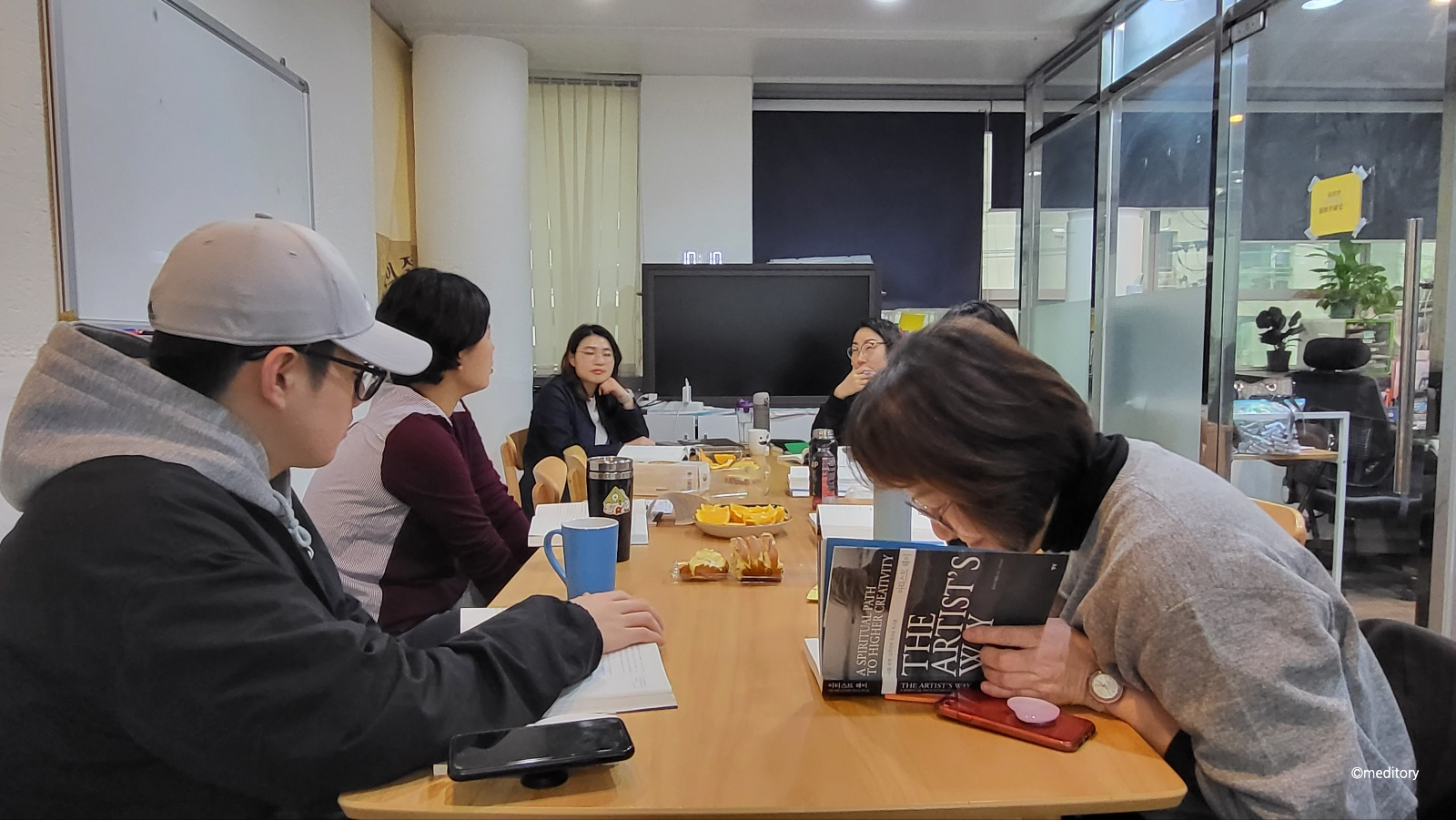 우리는 매주 모닝페이지와 아티스트데이트 경험을 나누고, 동시성을 경험한 적 있는지, 창조성 회복에 중요하다고 생각되는 사건이 있었는지 이야기나눴다.