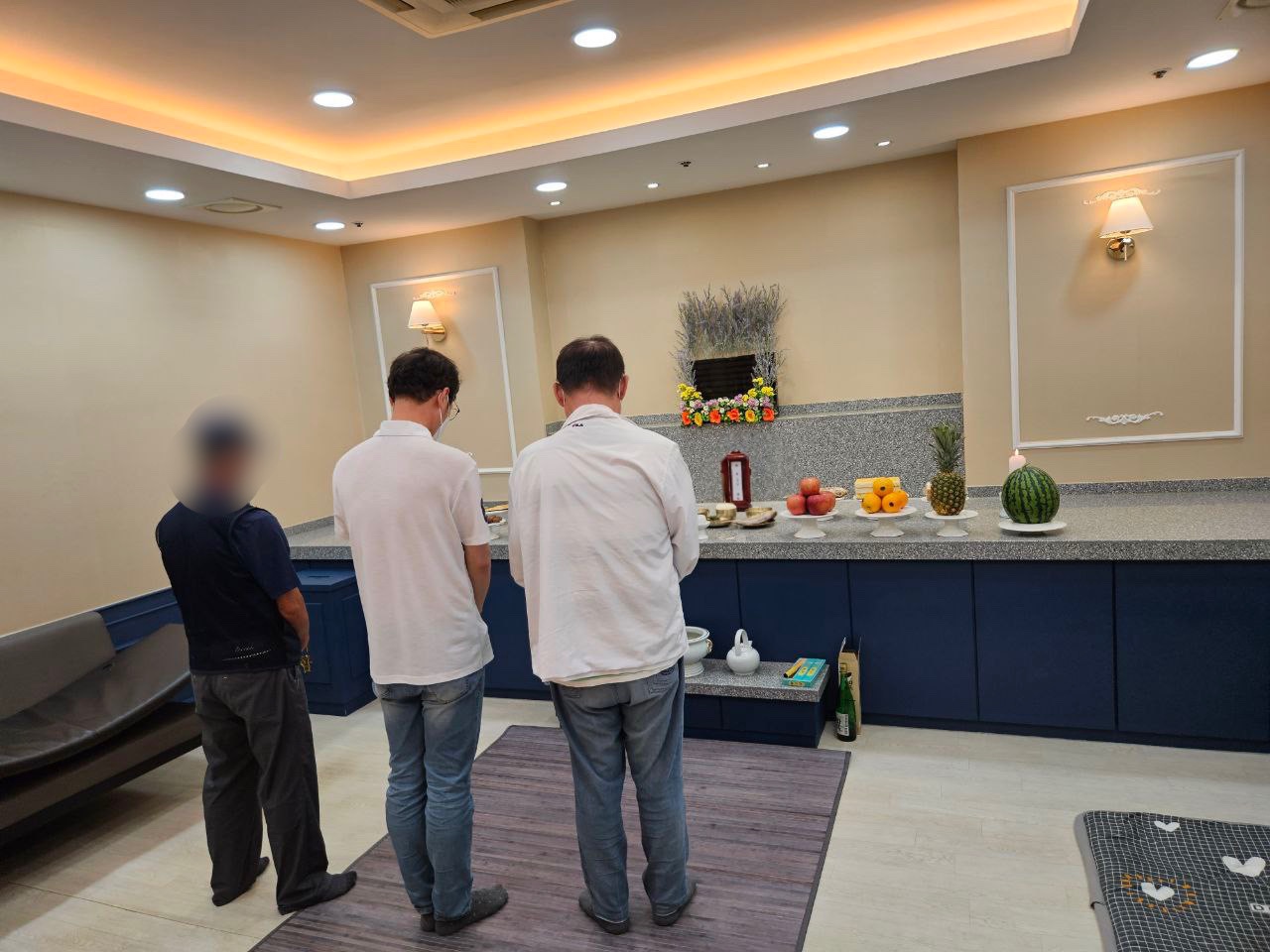 임5: 공영장례 조문단 조끼 입고, 모니터링단 명찰을 목에 걸고, 공영장례 체크리스트 확인하면서 다니다 보니 얼마지나지 않아서 현장에서 반응은 완전히 달라졌습니다. 어떤 장례업체는 우리가 묻기도 전에 장례 상황을 설명해주시기도하고 미흡했던 제물상 차림을 개선해 놓기도 했습니다. 행정에서도 장례업체에게 우리가 빈소에 조문하러 간다고 미리 일러두기까지 하시면서 관리에 좀 더 신경을 써주셨습니다. 이 자리를 빌어서 협조해주신 행정과 장례업체 담당자분들께 감사의 마음을 전하고 싶습니다.