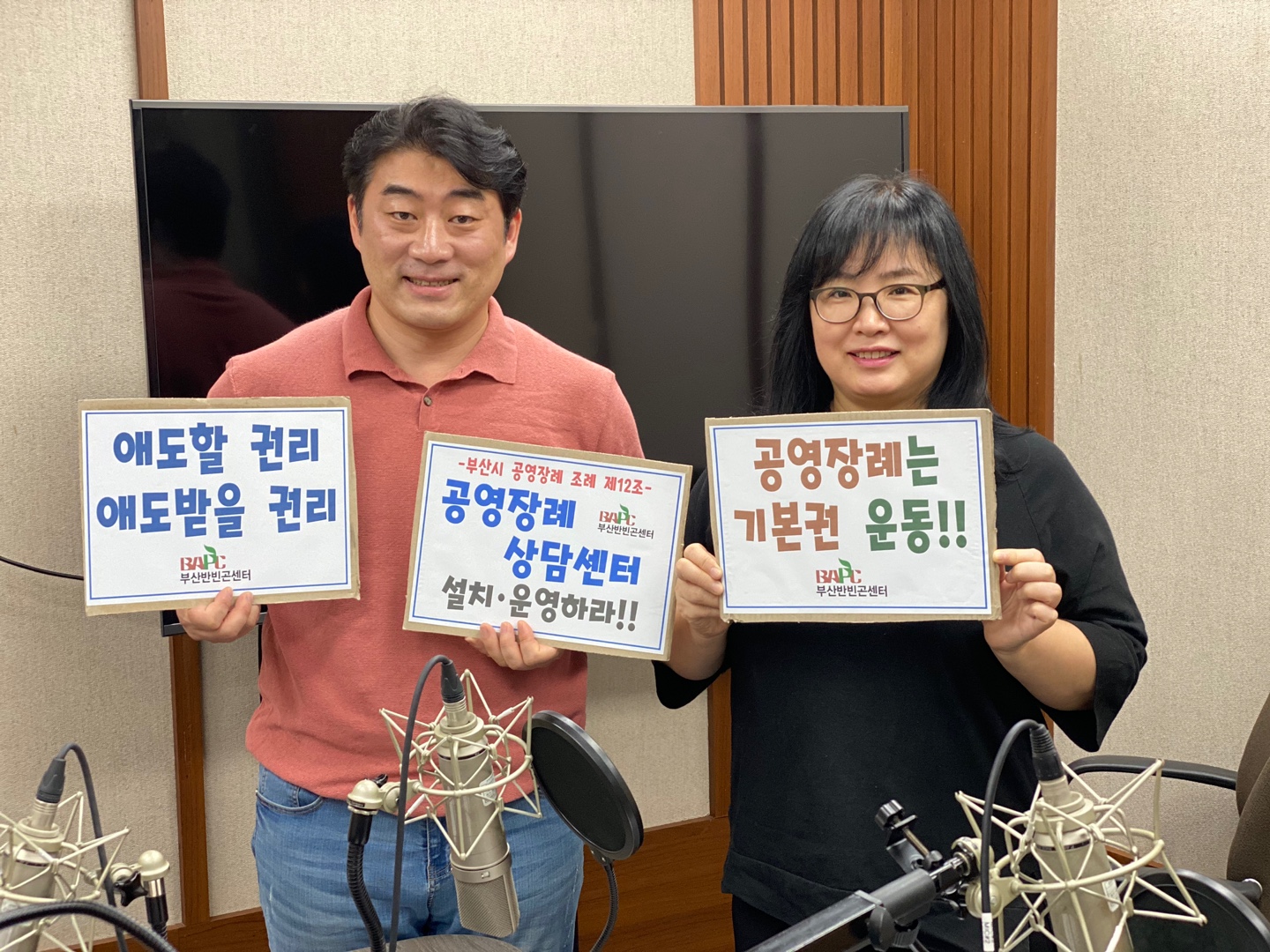 MC 1 : 오늘 라디오시민세상에서는 지난 5월 말부터 8월 말까지 3개월 동안 진행했던 '부산시 공영장례제도 조문단 및 모니터링단’ 활동을 살펴보려고 합니다. 함께 이야기 나눌 부산반빈곤센터 임기헌 운영위원 그리고 박은희 회원 나오셨습니다. 안녕하세요?