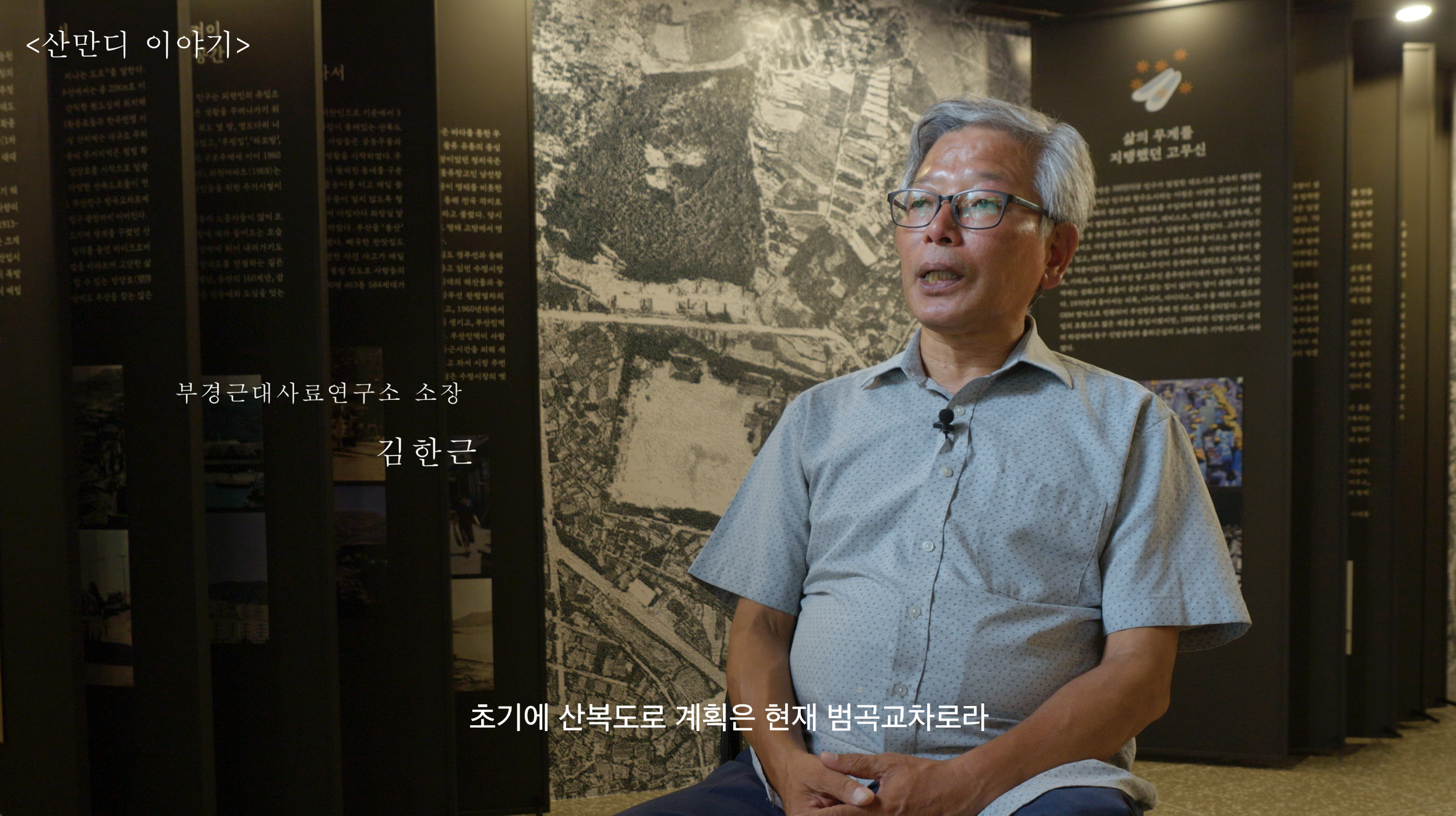 “그러니까 부산에서의 산복도로 개설은 단순히 산자락에 살고 있는 피란민 거주자들의 어떤 교통편이 뿐만 아니라 당시에 이제 환경이나 위생 문제들 그리고 화재가 났을 때 소위 소방차가 갈 수 있는 이런 접근 문제, 이런 것들이 모든 것이 포함된 어떤 면에서는 부산의 도시계획의 일환으로서는 아주 중대한 결단 중에 하나였다…. 이렇게 볼 수 있는 거죠.” (김한근 / 부경근대사료연구소 소장 인터뷰 중)