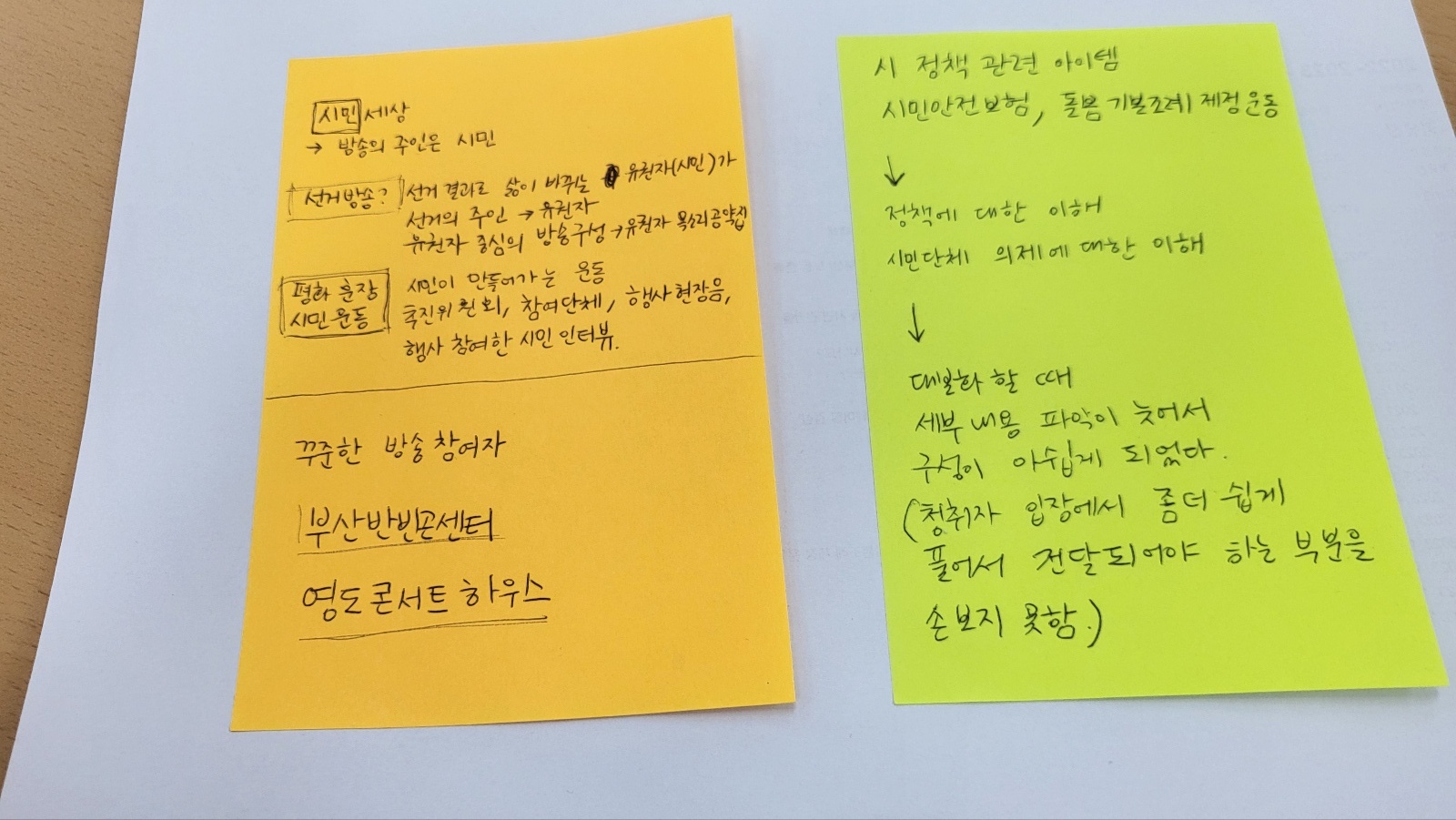 부산시 정책을 이야기하는 방송을 지원했을 때 아쉬움이 많았어요.