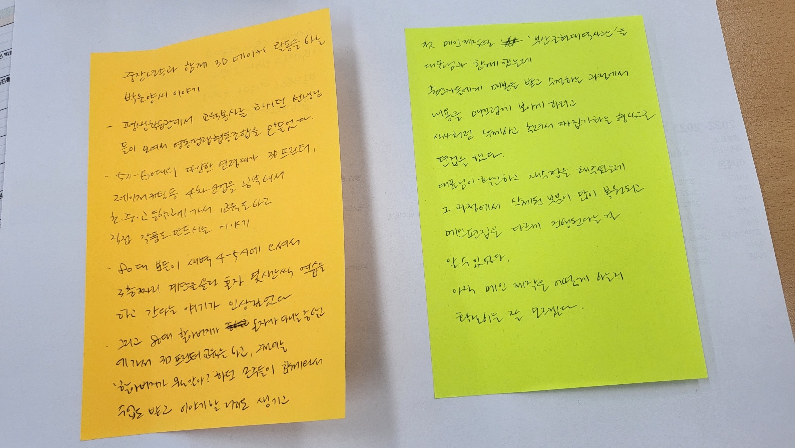 다시 대표님이 수정해주시는 과정에서 코너마다 구성이 많이 다르다는걸 알게됐고 대담코너는 아직 어려운 점이 많은 거 같아요.