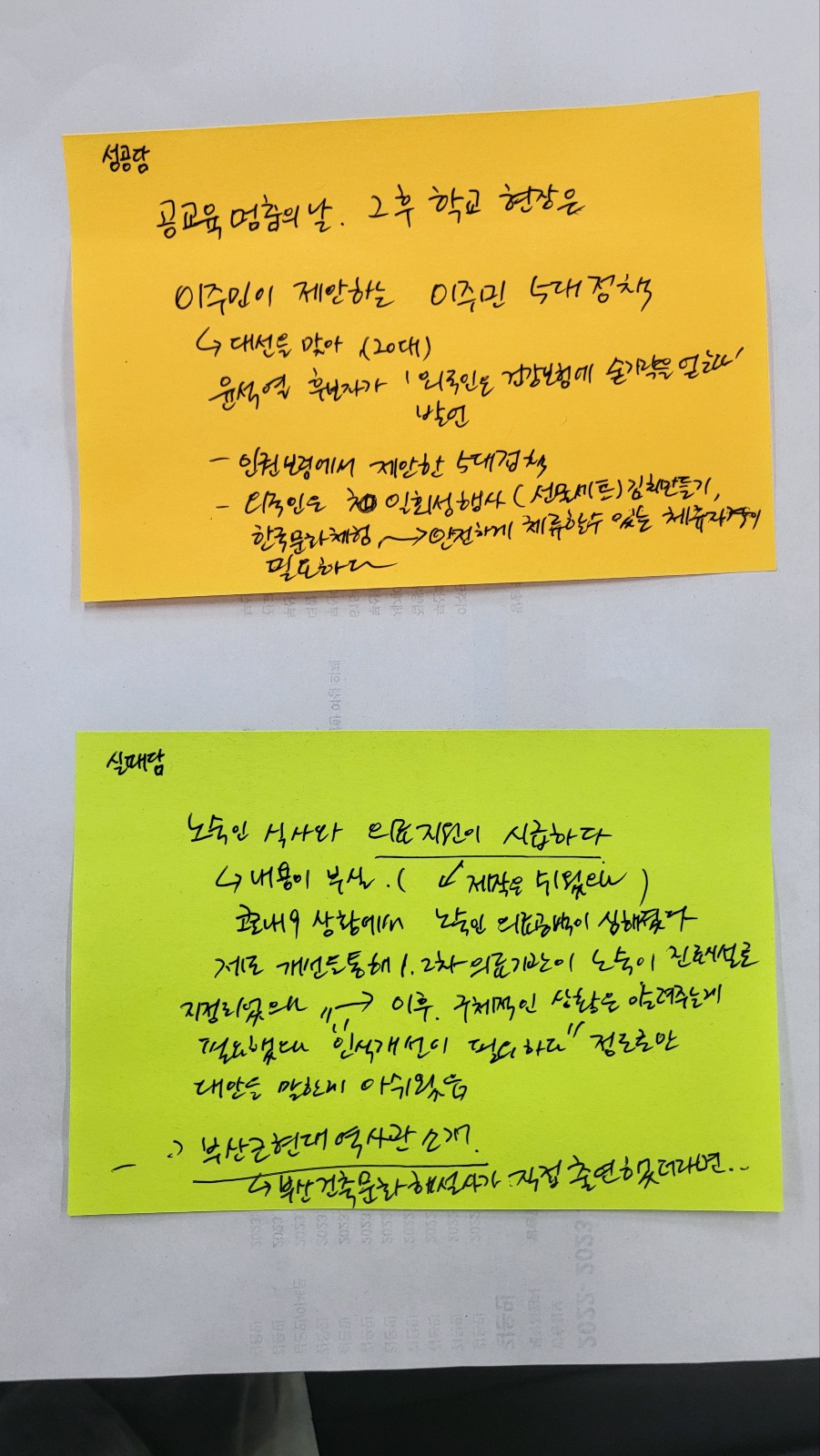 부산근현대역사관을 첫 대담으로 제작했을 때 출연자들의 대본을 받고 수정하는 과정에서 사람과 사람 코너처럼 편집을 했었어요.