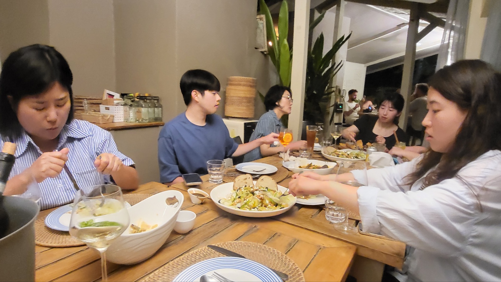 자기들끼리 모여 떠들썩하게 이야기를 나누고 있는 것 같은데, 우리가 끼어든 게 아닌가 싶었어요.