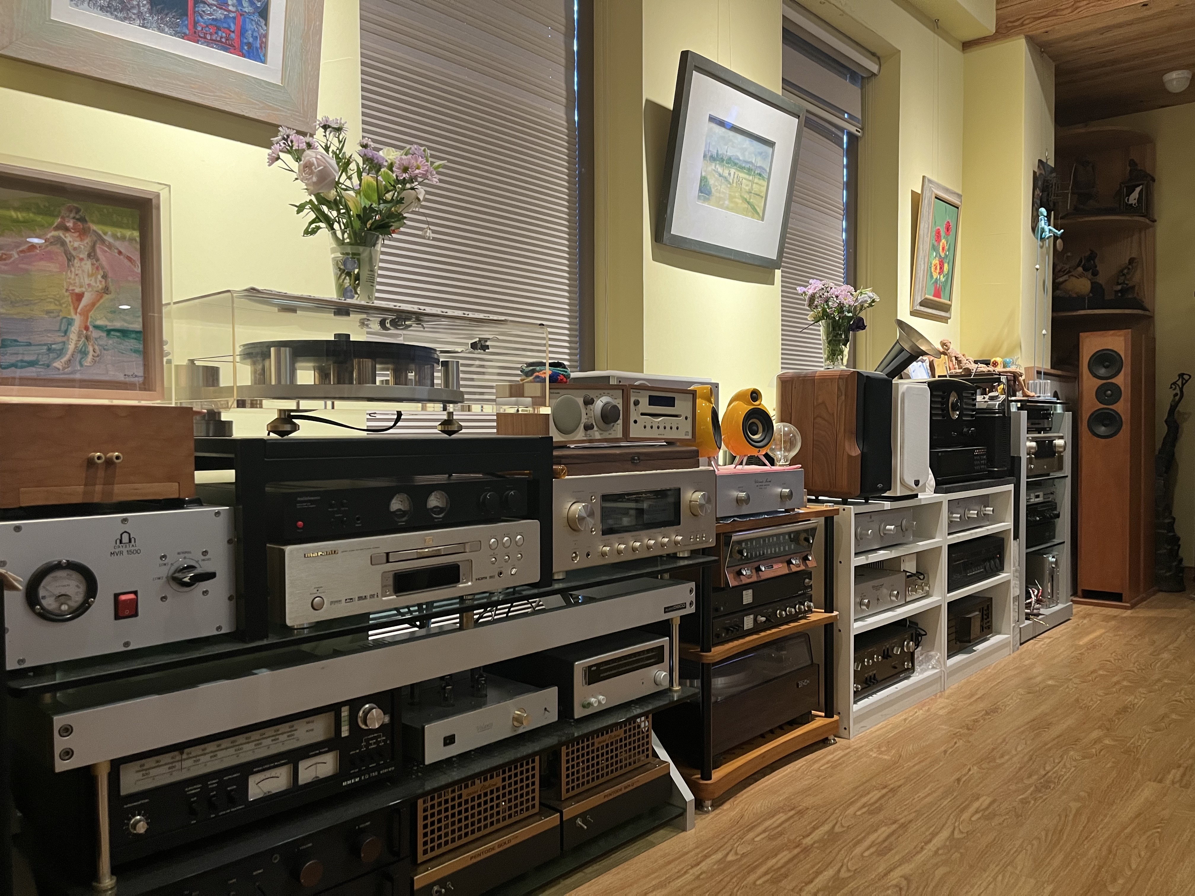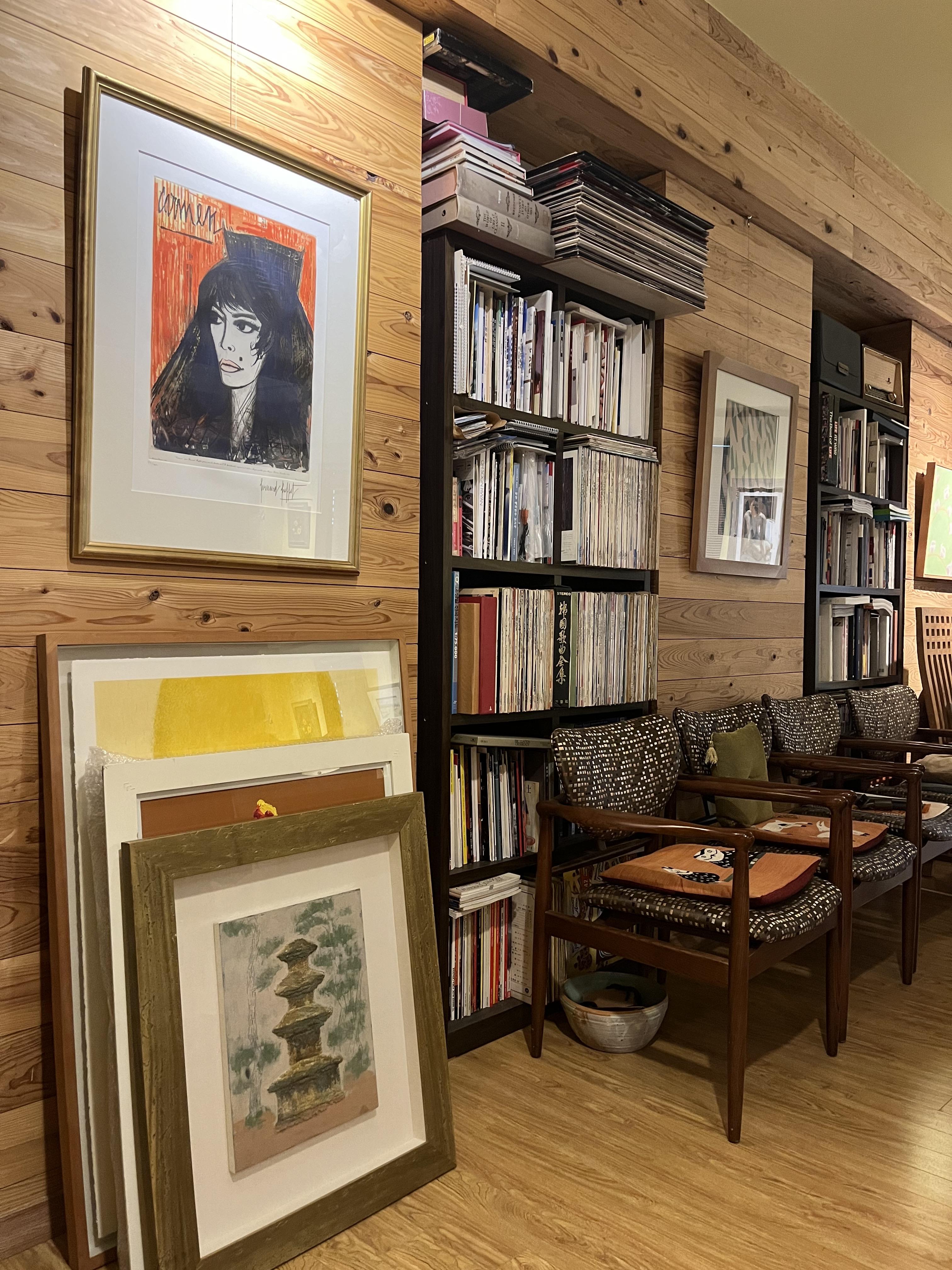 들어가자마자 맞이하는 엄청난 양의 레코드와 미술작품, 스피커들(안쪽에 모아논 그림들까지 보여주셨다)