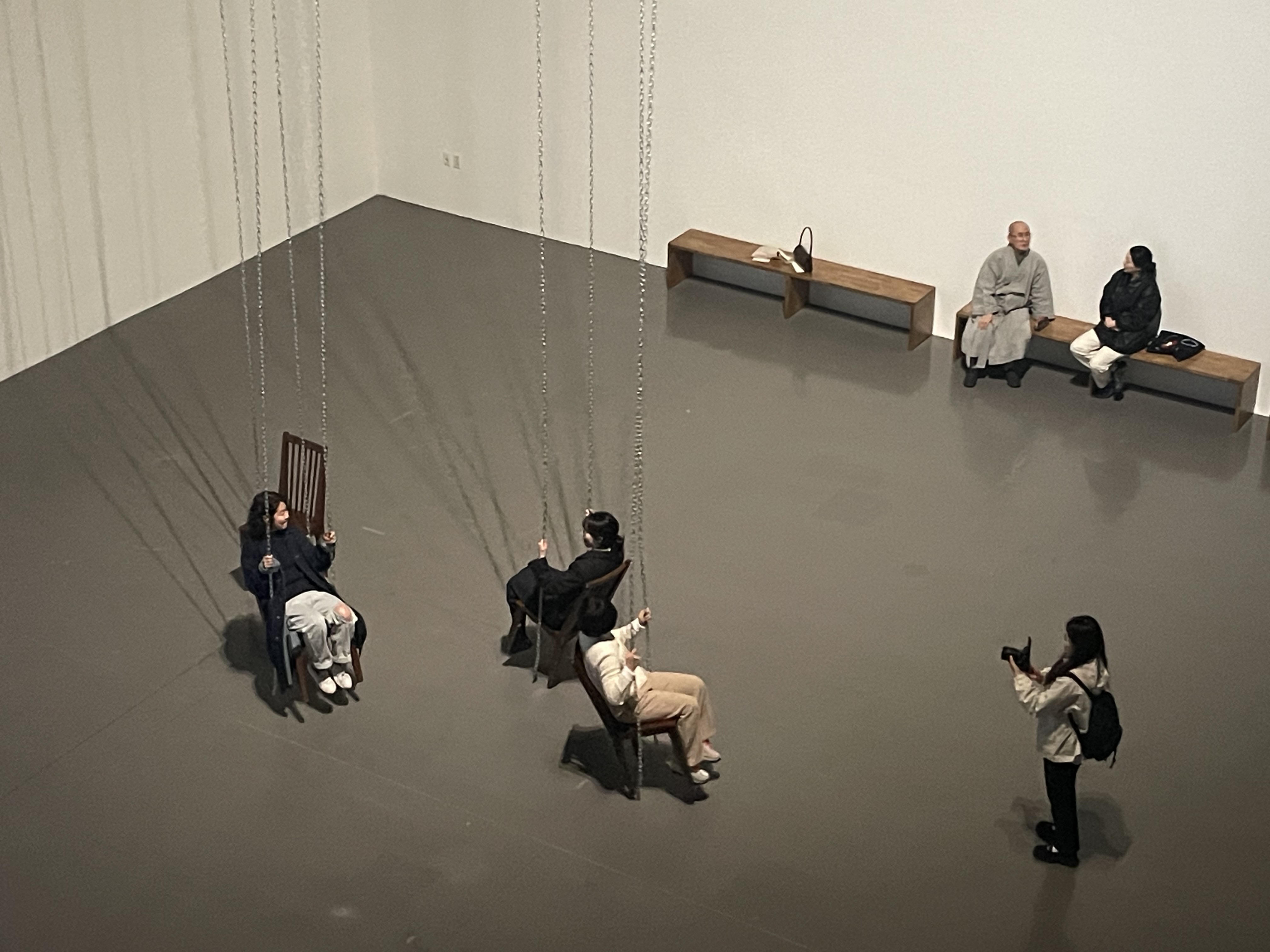 영: 왜 이게 전술적 공간이다 하는지 알 수 있었고, 지민님과 그네를 탈 때 접촉하려고 하지 않으니까 독립적인 궤도를 가지다가, 손을 잡으면서 궤도가 꼬이고 충돌하면서 흔들리고 재밌어지고 넓어지더라. 힘들고 부딪히면서 넓은 세계를 만날 수 있구나. 이게 로컬리티인가? 라는 생각이 들었다. 또, 별개의 작품인데 코에 생선의 비릿함, 바다냄새가 남아있는데 한층 아래로 내려가면서 김주열 열사에 관한 바다소리가 났다. 다른 작가의 작품인데 내려갈수록 더 깊은 물로 들어가는 느낌이 강하게 들었다. 연결이 좋았다.