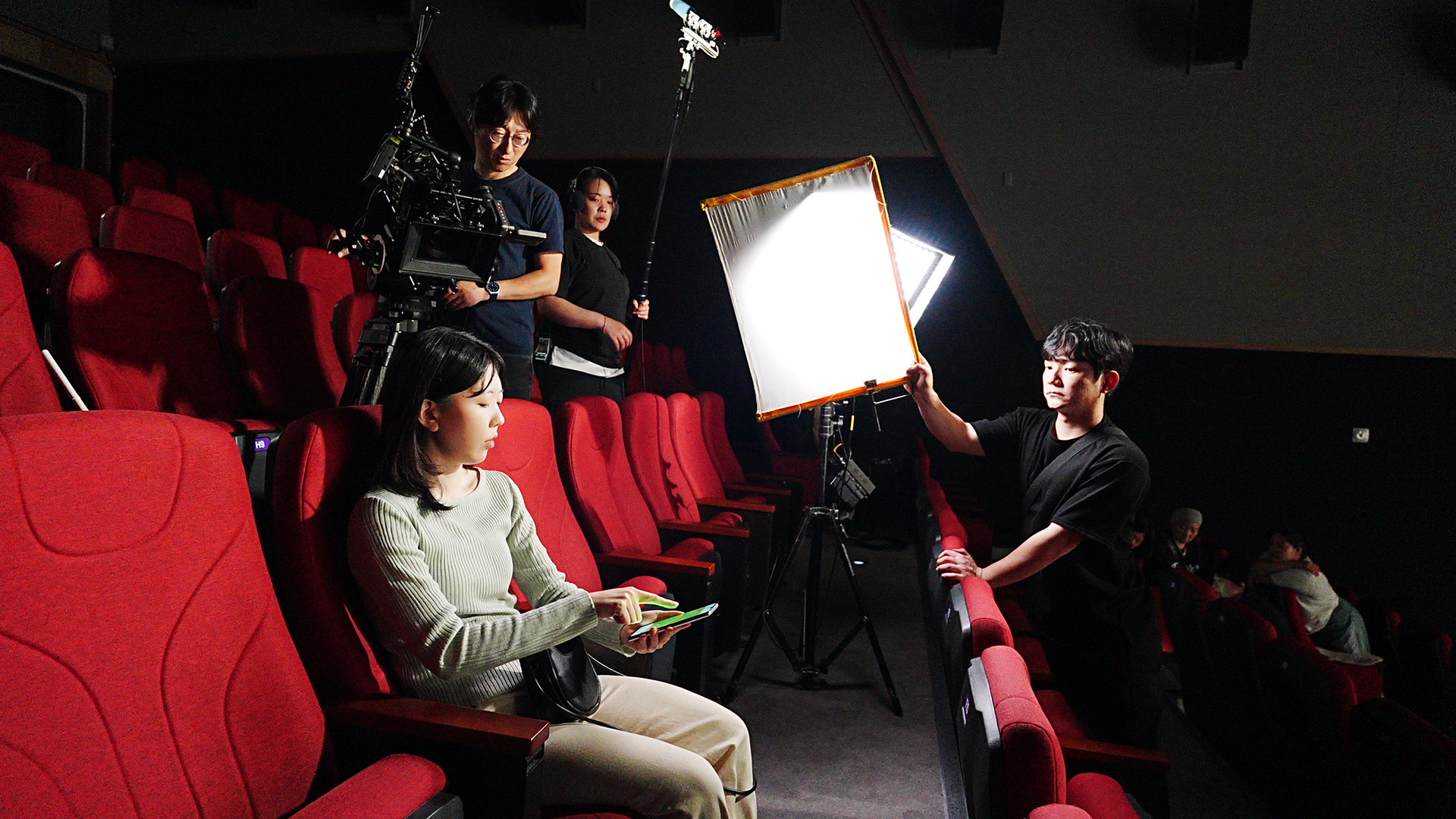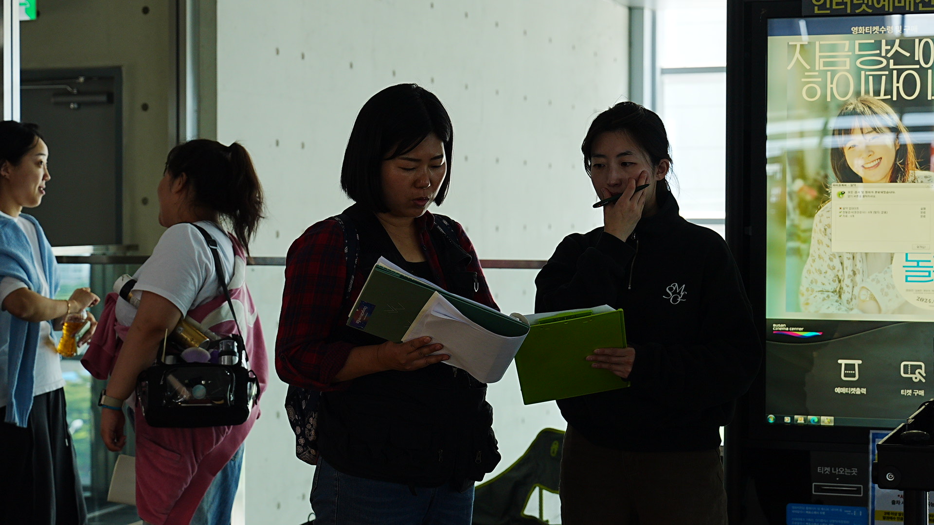 ‘가영'과 ‘나영'이 같은 상영관에 나란히 앉아 즐겁게 영화를 감상하며 교류한다.