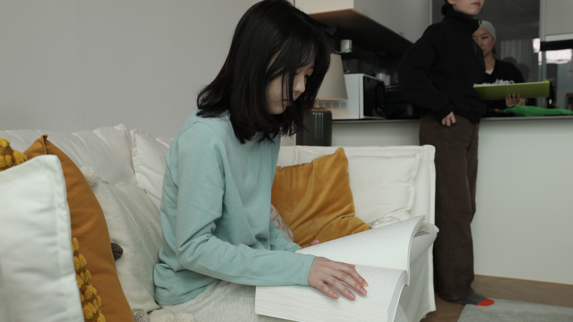 장애인을 ‘돌봄이 필요한 개인’으로만 바라보는 시선을 벗어나, 다양한 사회적 관계 안에 속한 하나의 주체로 보여주기 위해 등장인물 간의 관계를 친구 사이로 설정했습니다. 또한 시각장애인 역할을 맡은 신가영 배우는 실제 비장애인이었기 때문에, 보다 자연스러운 연기가 이루어질 수 있도록 한국농아인협회와 한국시각장애인연합회의 자문을 받아 연출에 반영했습니다